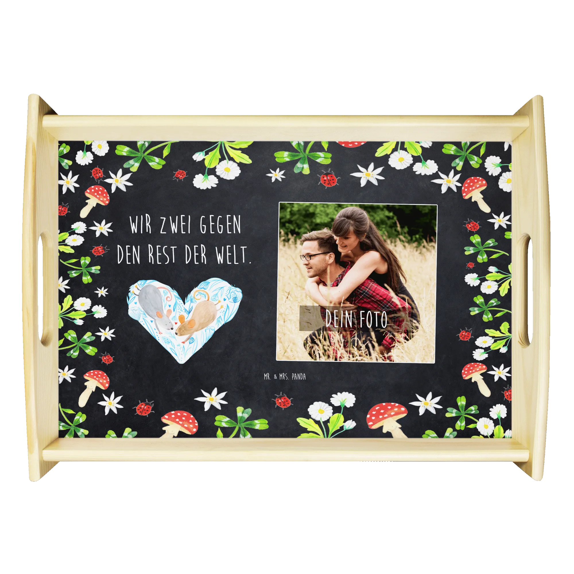 Das personalisierte Foto Serviertablett mit dem zauberhaften Mäuse Herz Motiv von Mr. & Mrs. Panda ist das ideale Geschenk für alle Liebenden. Ob für den Jahrestag, die Verlobung oder einfach nur so, um deinem Lieblingsmenschen zu zeigen, wie wichtig er dir ist – dieses Tablett ist einfach perfekt!