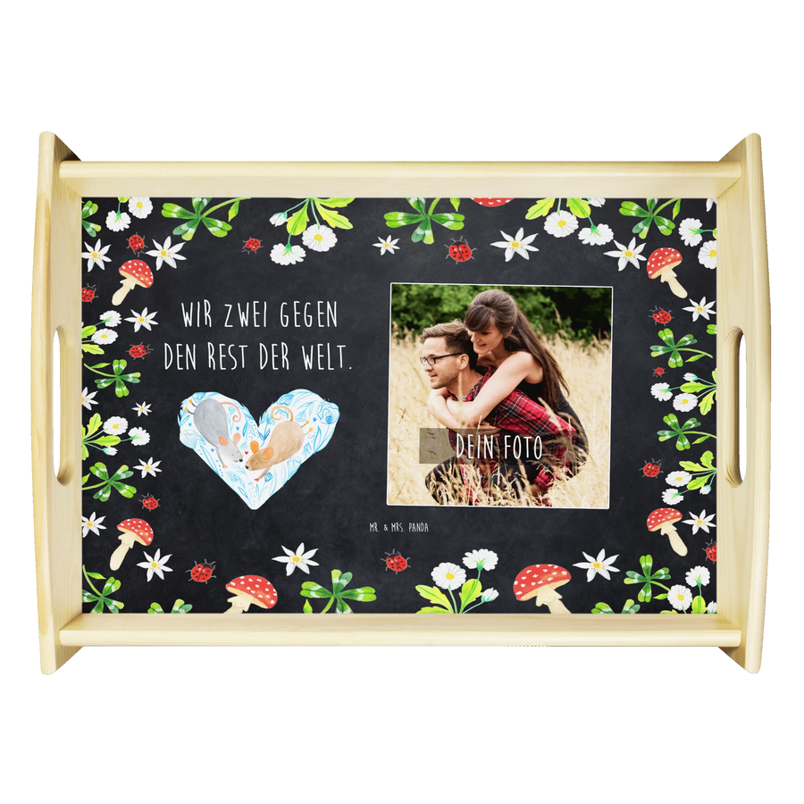 Das personalisierte Foto Serviertablett mit dem niedlichen Motiv Mäuse Herz von Mr. & Mrs. Panda ist das perfekte Geschenk für alle, die ihre Liebe kreativ ausdrücken wollen. Ob für den Jahrestag, die Verlobung oder einfach als Liebesbeweis für deinen Lieblingsmenschen - dieses Tablett verbindet Funktionalität mit einer zauberhaften Liebesbotschaft.