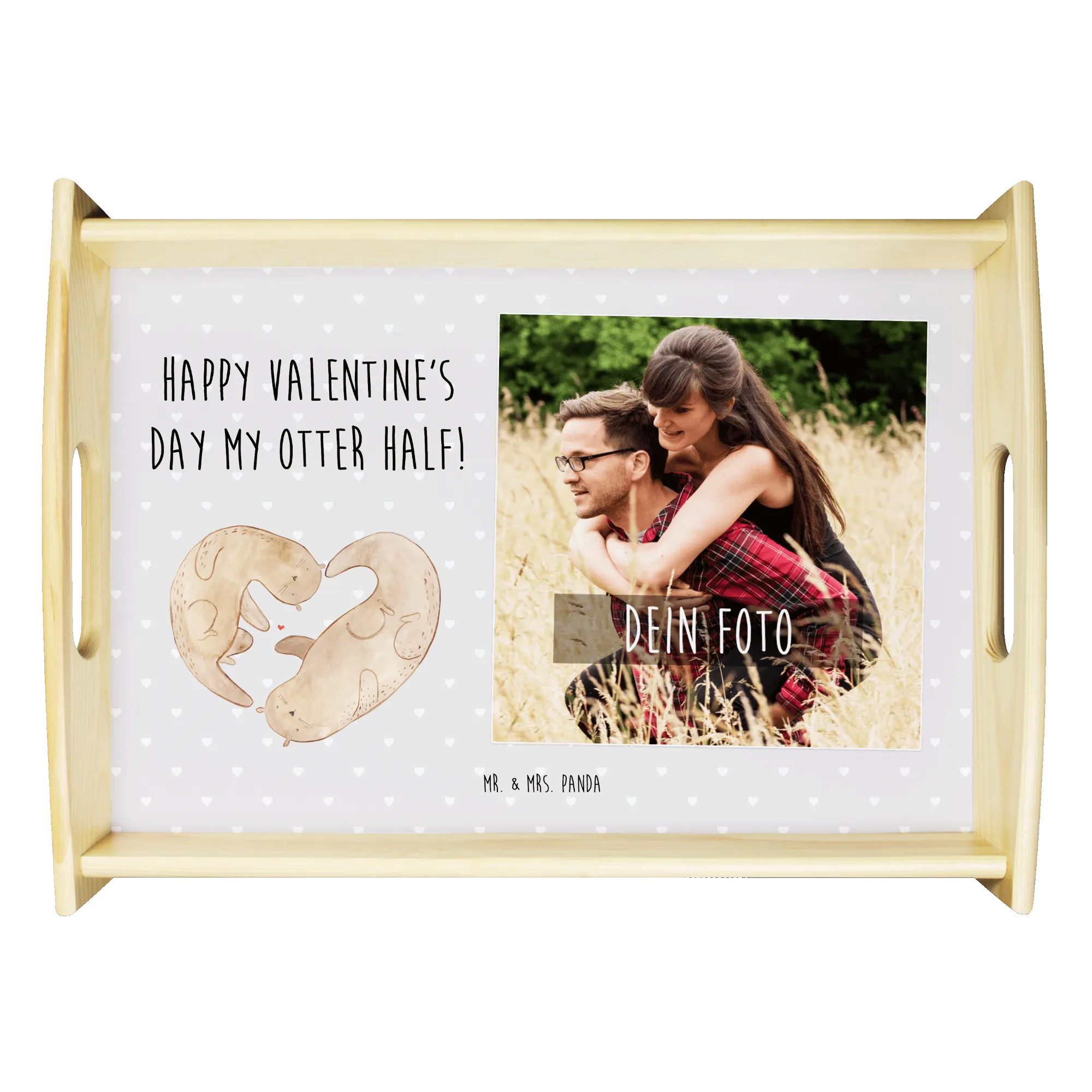 Das personalisierte Foto Serviertablett Otter Valentine von Mr. & Mrs. Panda ist das perfekte Geschenk für Verliebte! Egal, ob Valentinstag, Jahrestag, Hochzeitstag oder einfach so – dieses liebevoll gestaltete Tablett bringt nicht nur Freude, sondern auch unvergessliche Momente.