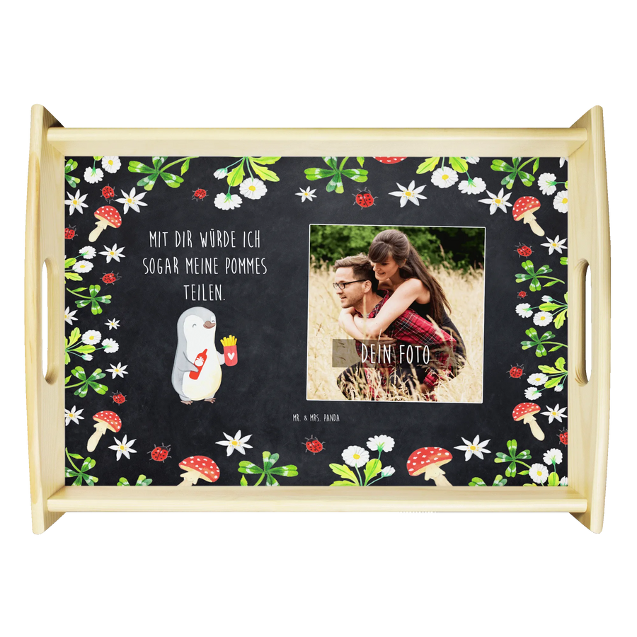 Entdecke das perfekte Geschenk für deine Liebsten mit unserem personalisierten Foto Serviertablett im bezaubernden Pinguin Pommes Design aus der Liebe Kollektion von Mr. & Mrs. Panda. Dieses einzigartige Tablett, gefertigt aus hochwertigem, lasiertem Echtholz, ist nicht nur ein praktisches Küchenutensil, sondern auch eine wundervolle Möglichkeit, deine Liebe und Zuneigung auszudrücken.