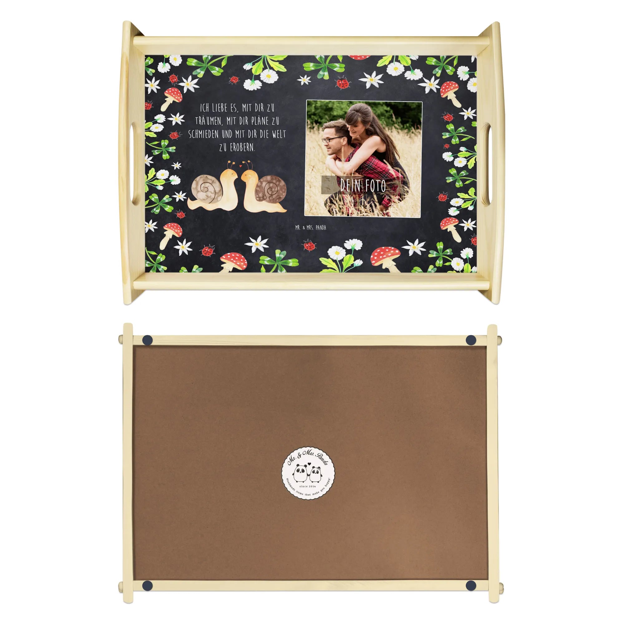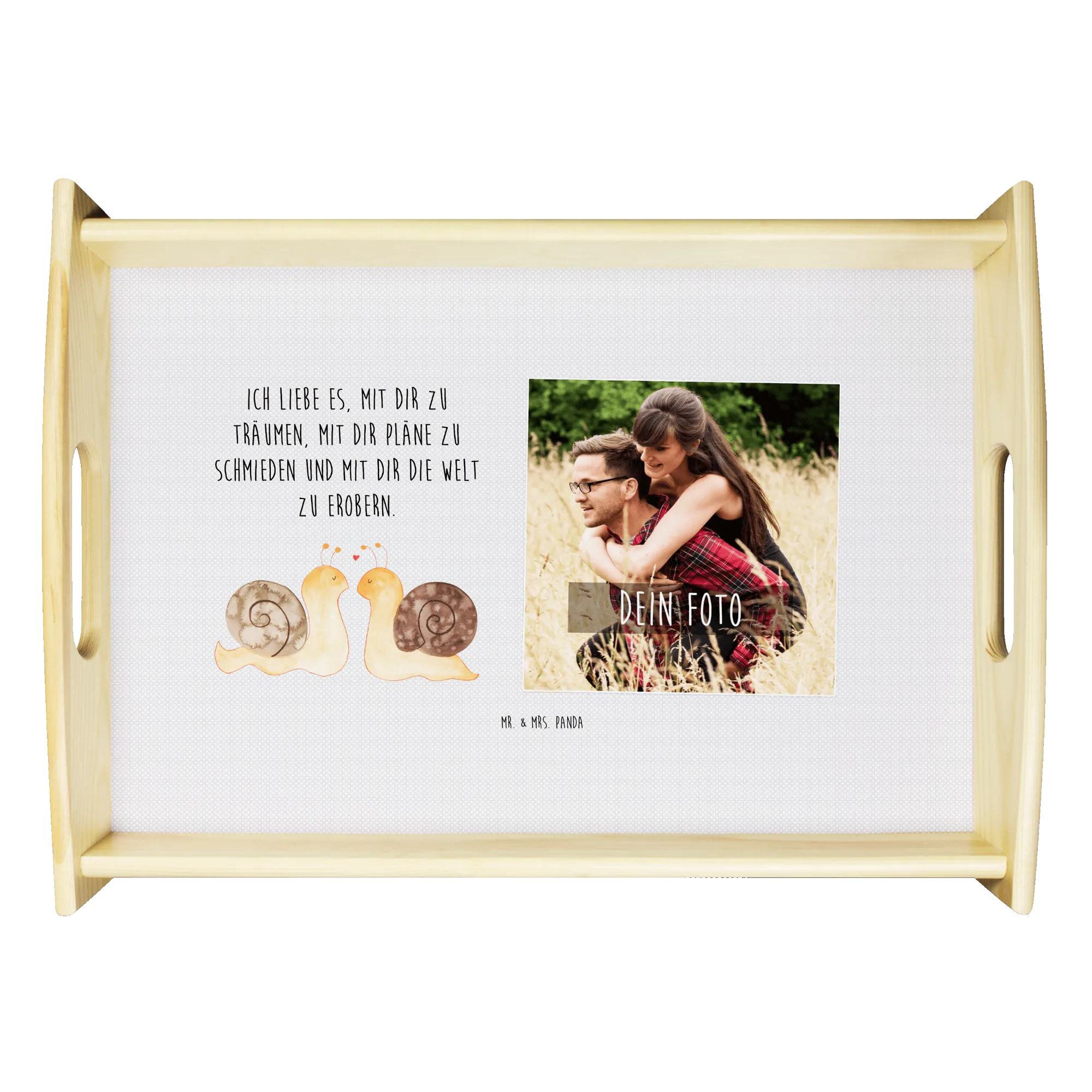 Das personalisierte Foto Serviertablett mit dem zauberhaften Motiv "Schnecken Liebe" aus der Kollektion Liebe von Mr. & Mrs. Panda ist das perfekte Geschenk für Verliebte und all jene, die es werden möchten. Egal ob du deinem Partner, deiner Partnerin oder deinen Freunden eine besondere Freude machen möchtest, dieses Tablett ist genau das Richtige.