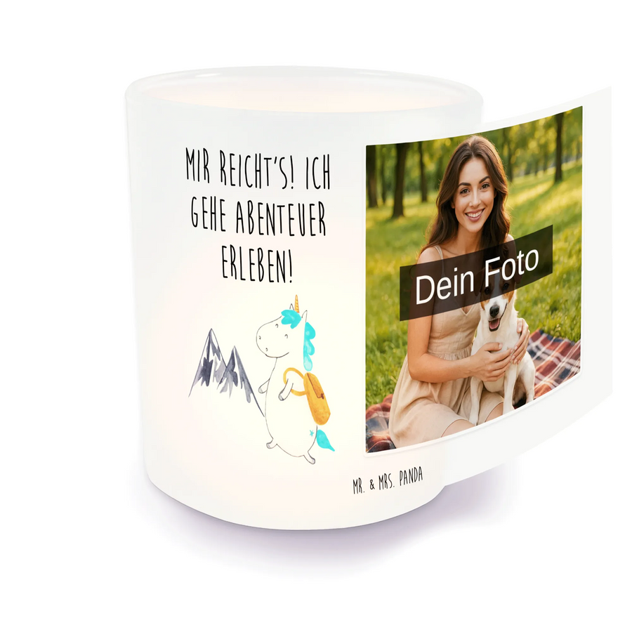 Personalisiertes Foto Windlicht Einhorn Bergsteiger