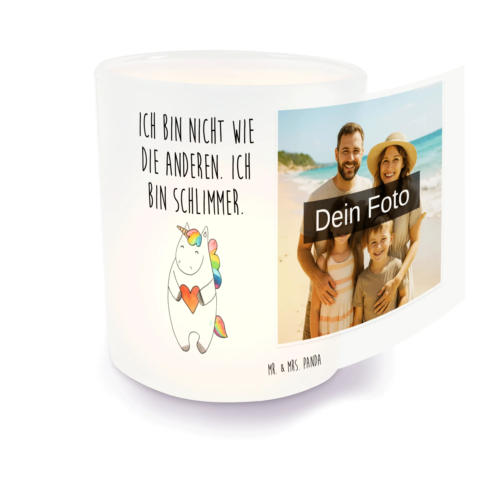 Personalisiertes Foto Windlicht Einhorn Herz