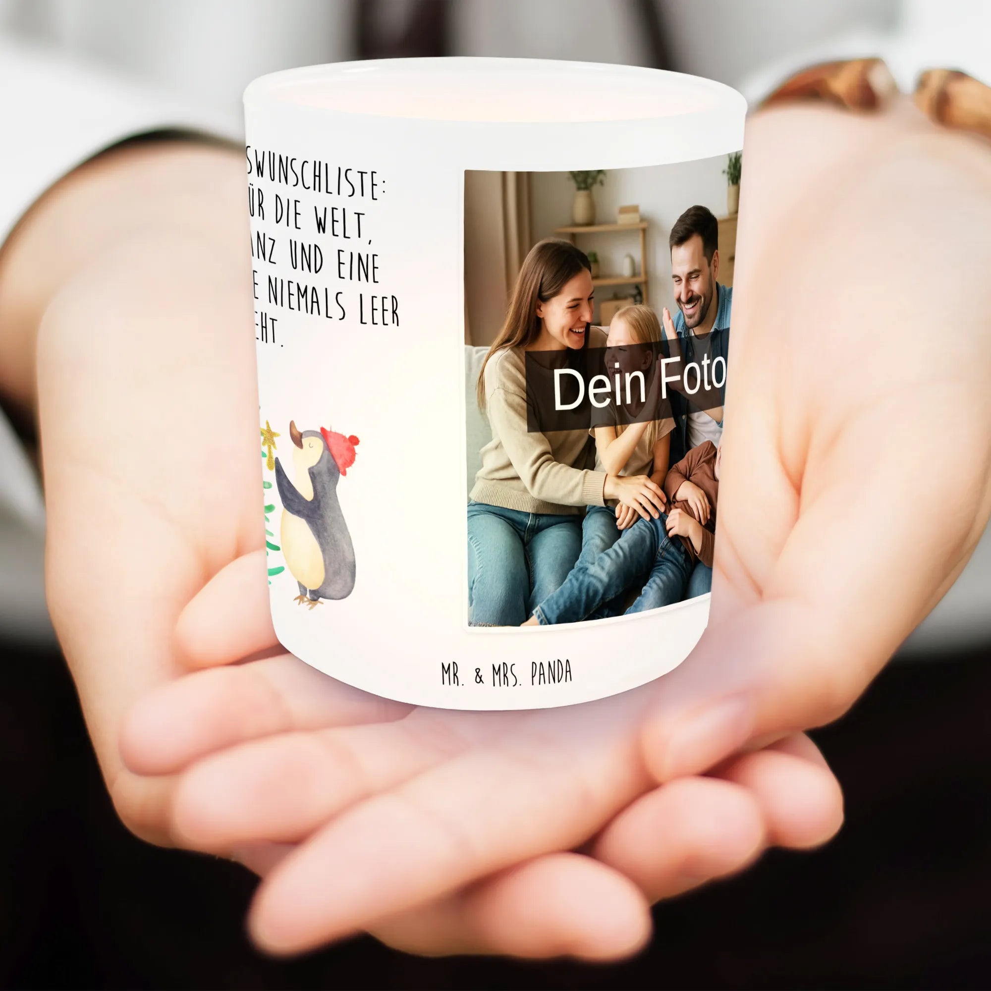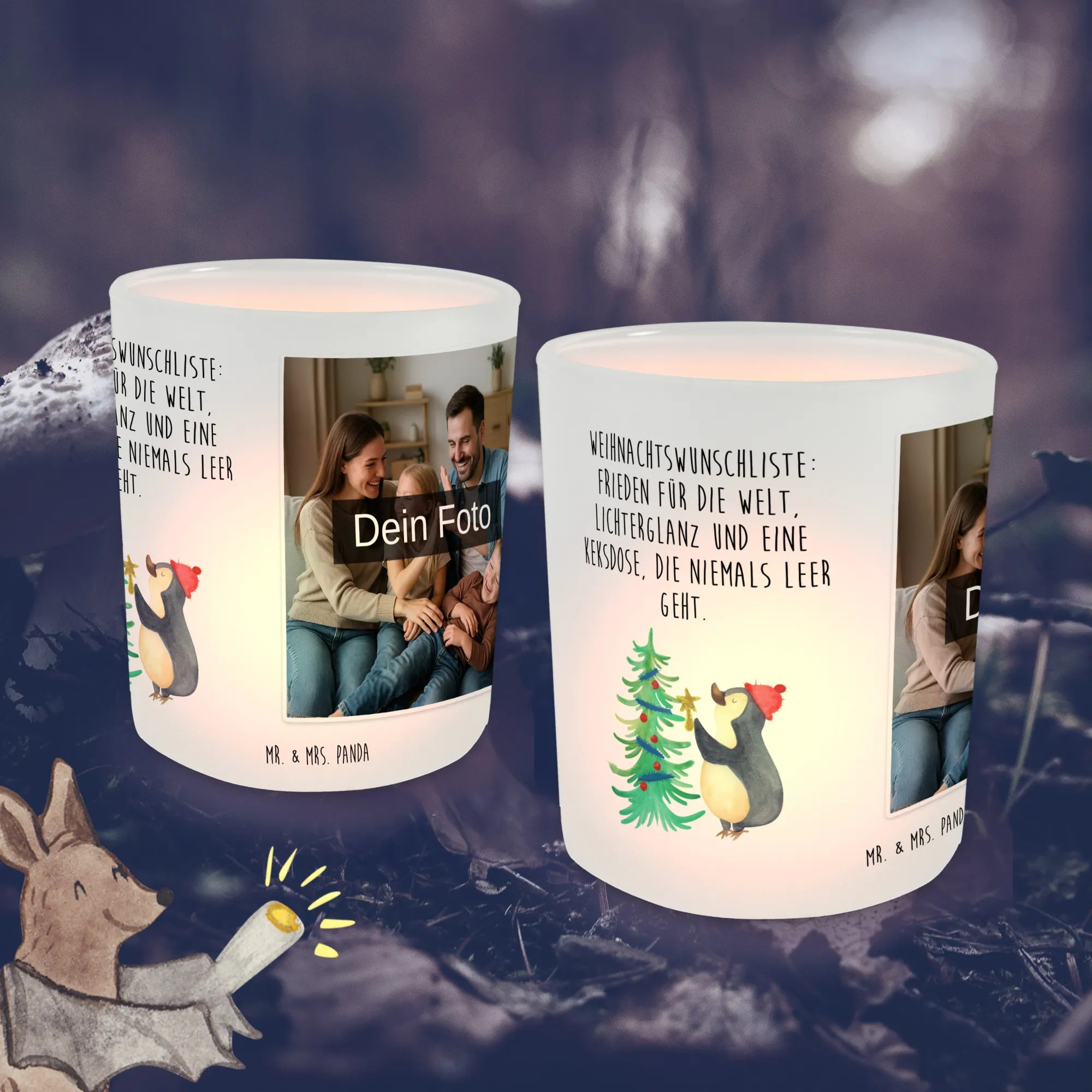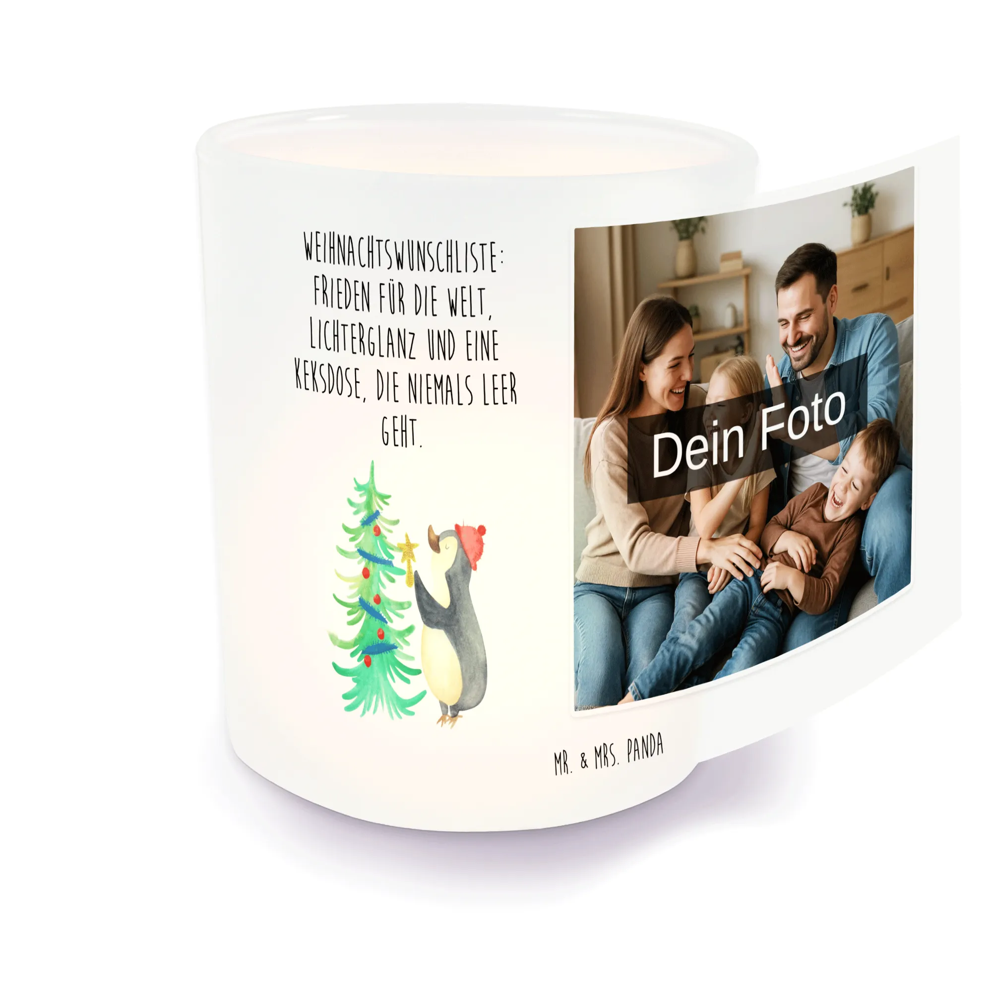 Personalisiertes Foto Windlicht Pinguin Weihnachtsbaum