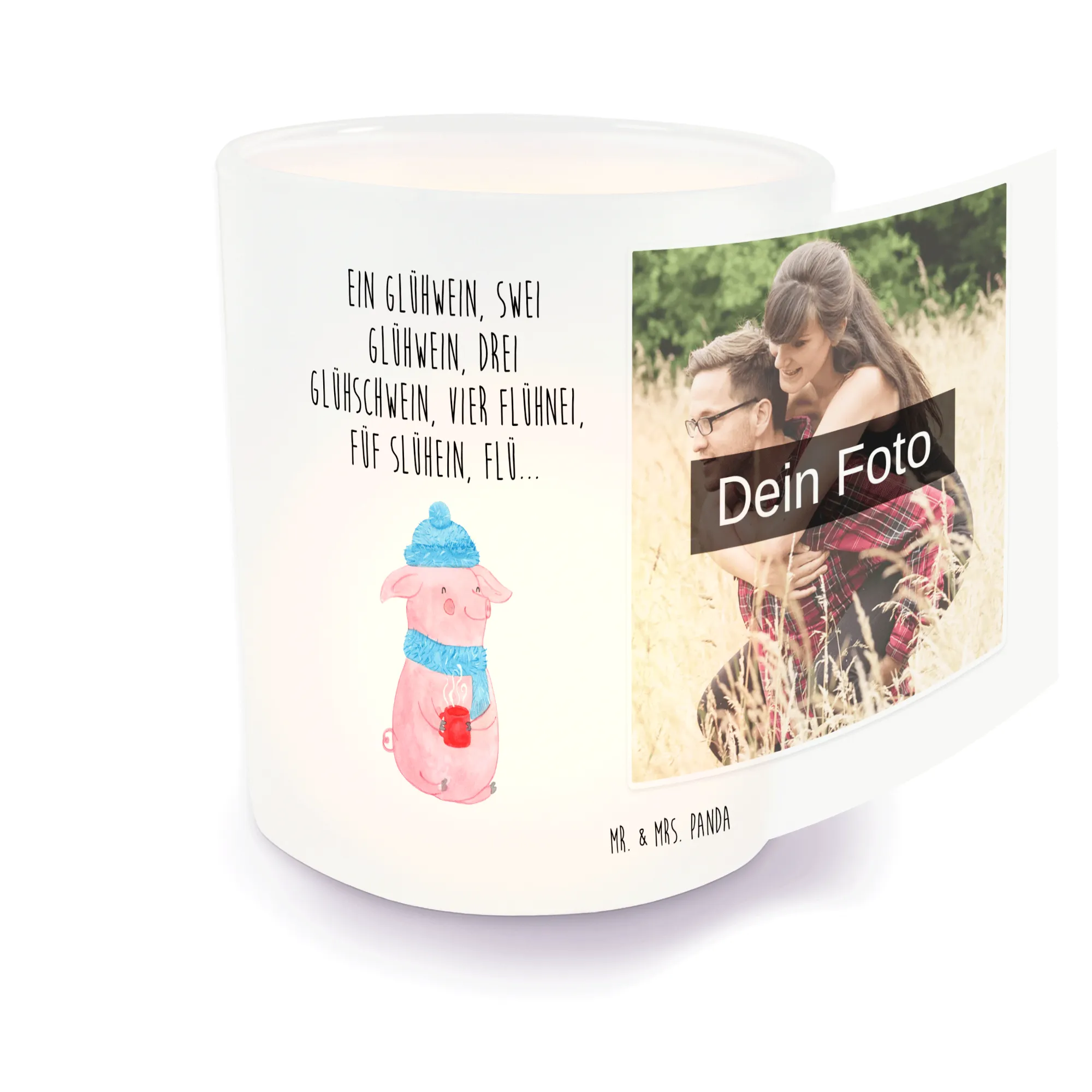 Personalisiertes Foto Windlicht Schweinchen Glühwein
