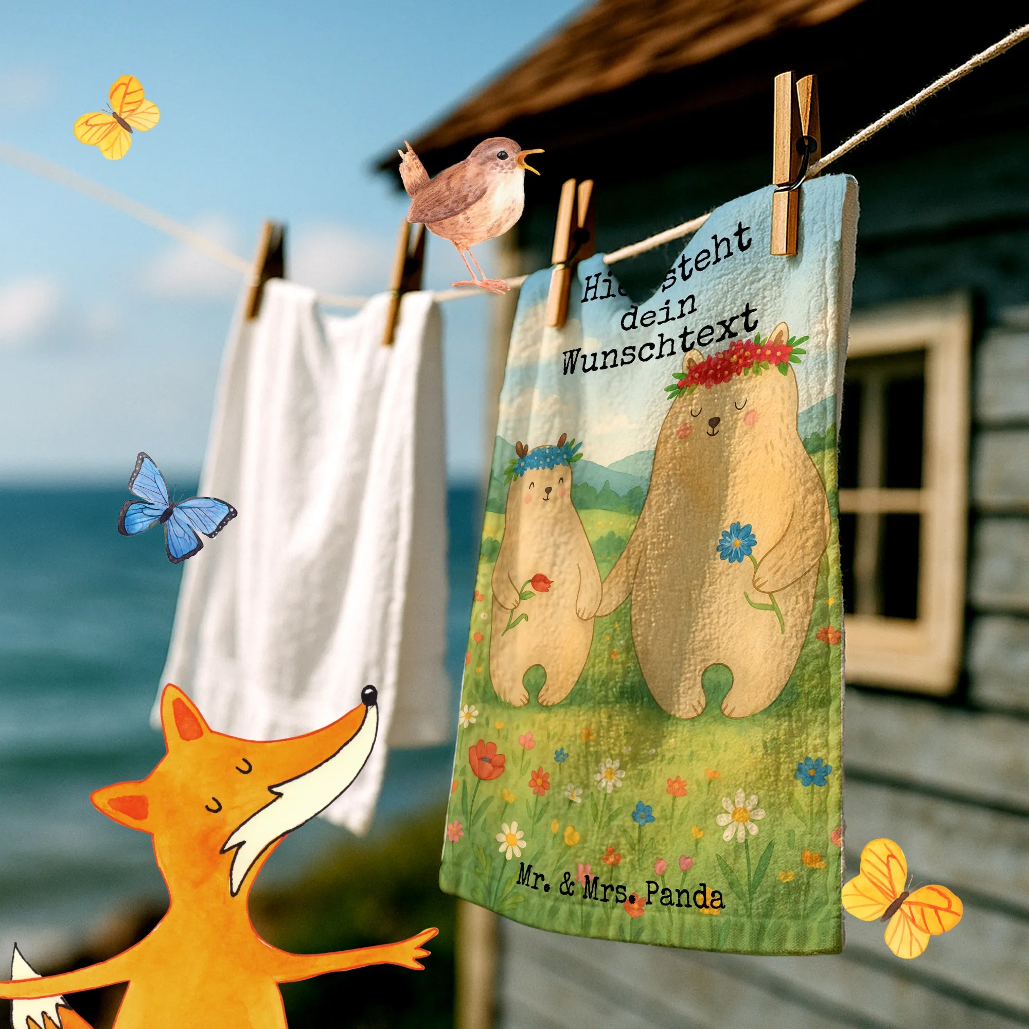 Personalisiertes Gästehandtuch Bären mit Blumenkranz Design