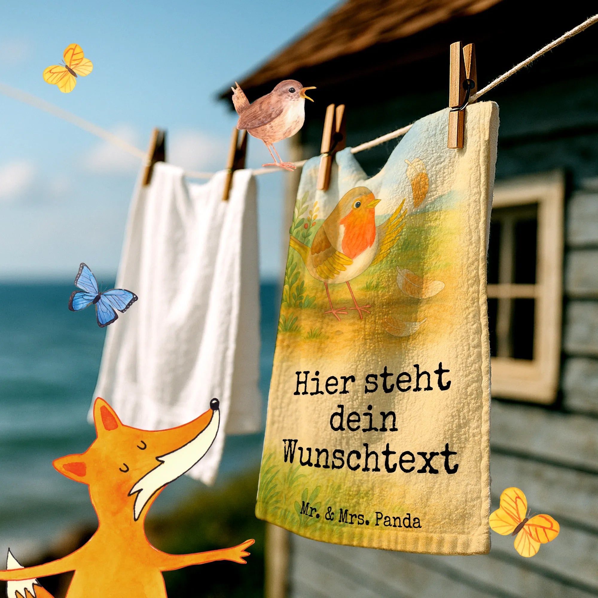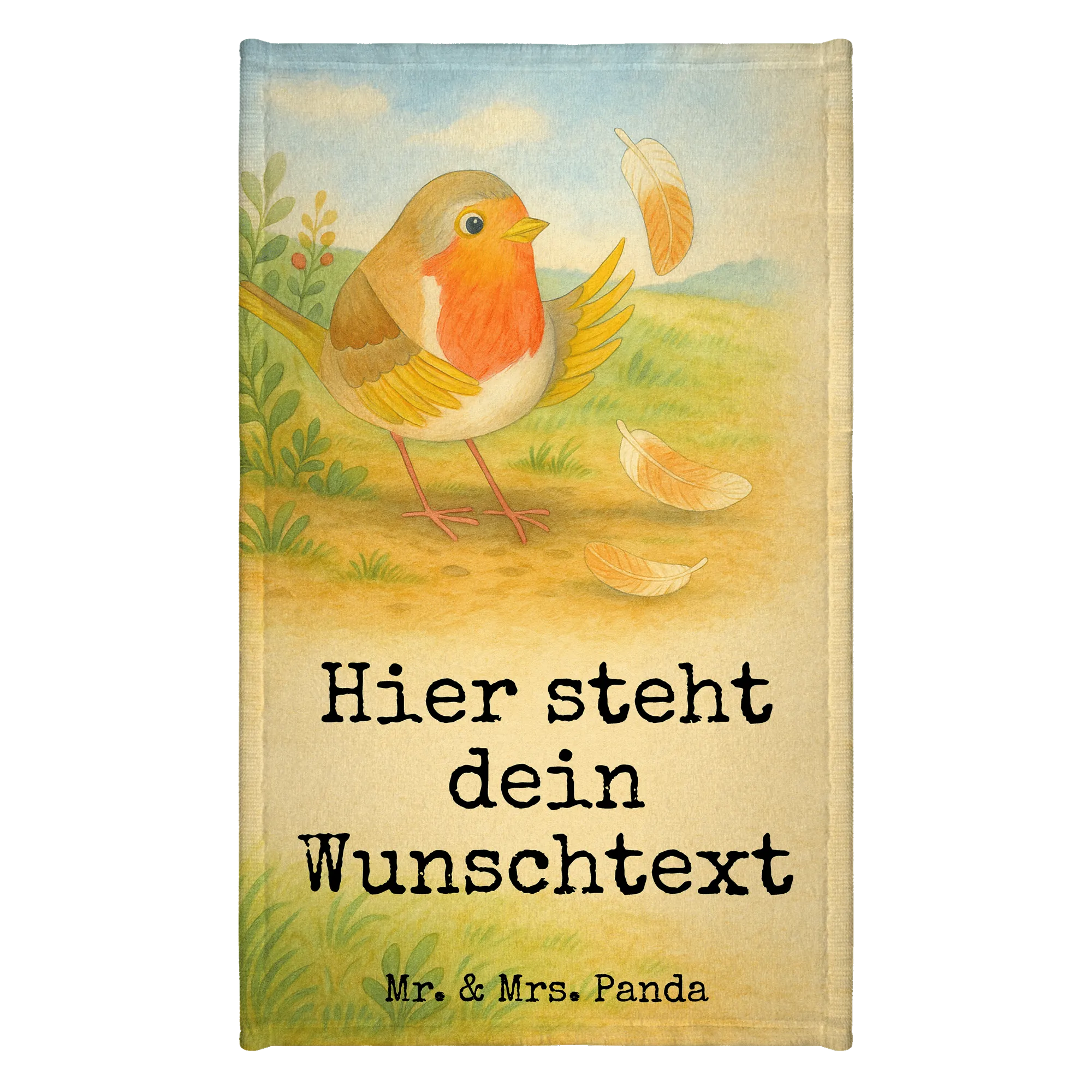 Personalisiertes Gästehandtuch Rotkehlchen Federn Design