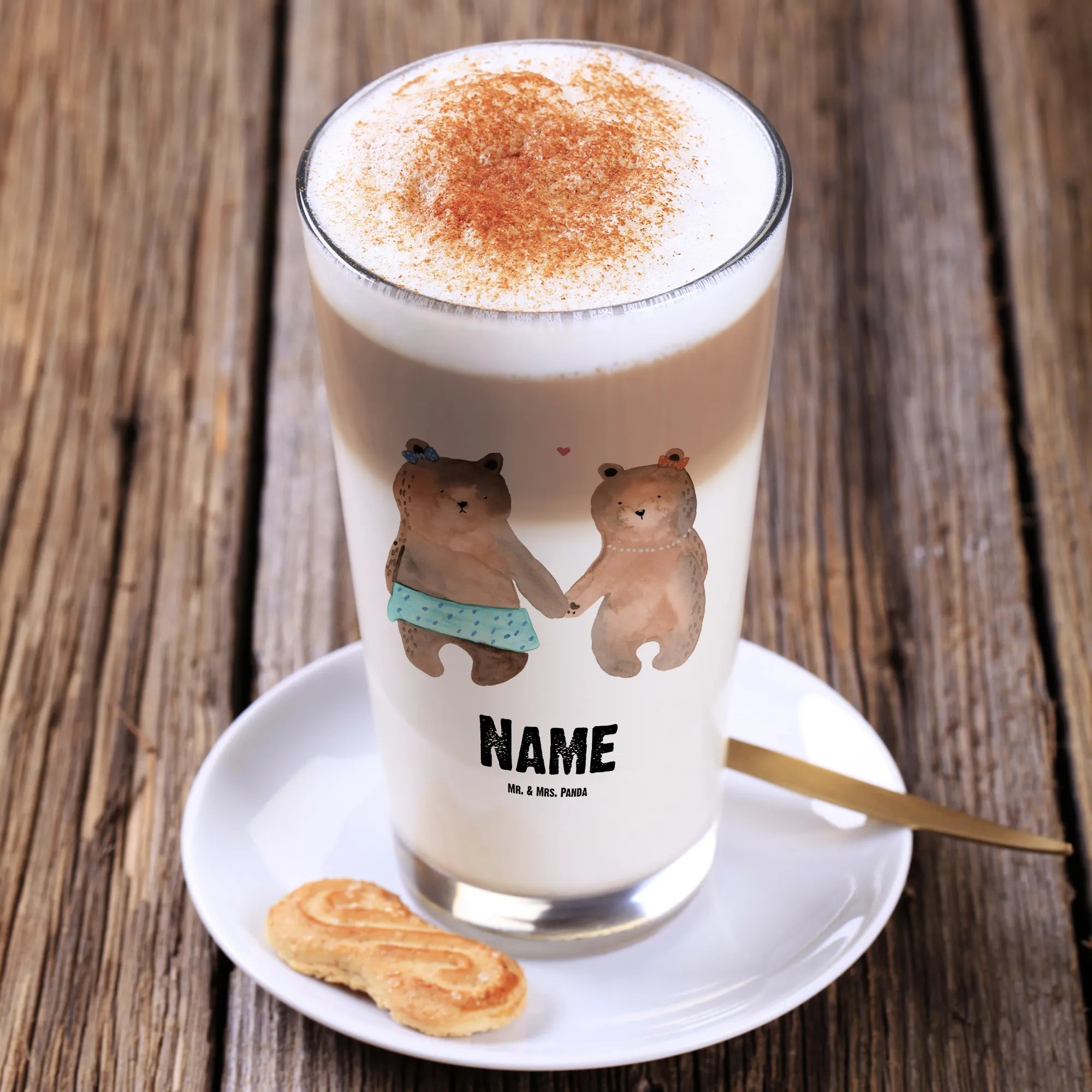 Mit dem liebevollen Design von zwei Bärenmädchen, die sich an den Händen halten, zaubert es jedem Betrachter ein Lächeln ins Gesicht. Das hochwertige, satiniertes Premiumglas hat eine edle, matte Oberfläche und liegt angenehm in der Hand. Die Maße von 150 mm Höhe und einem Durchmesser von 88 mm machen es ideal für Latte Macchiato, Cocktails, selbstgemachte Limonaden oder Säfte.