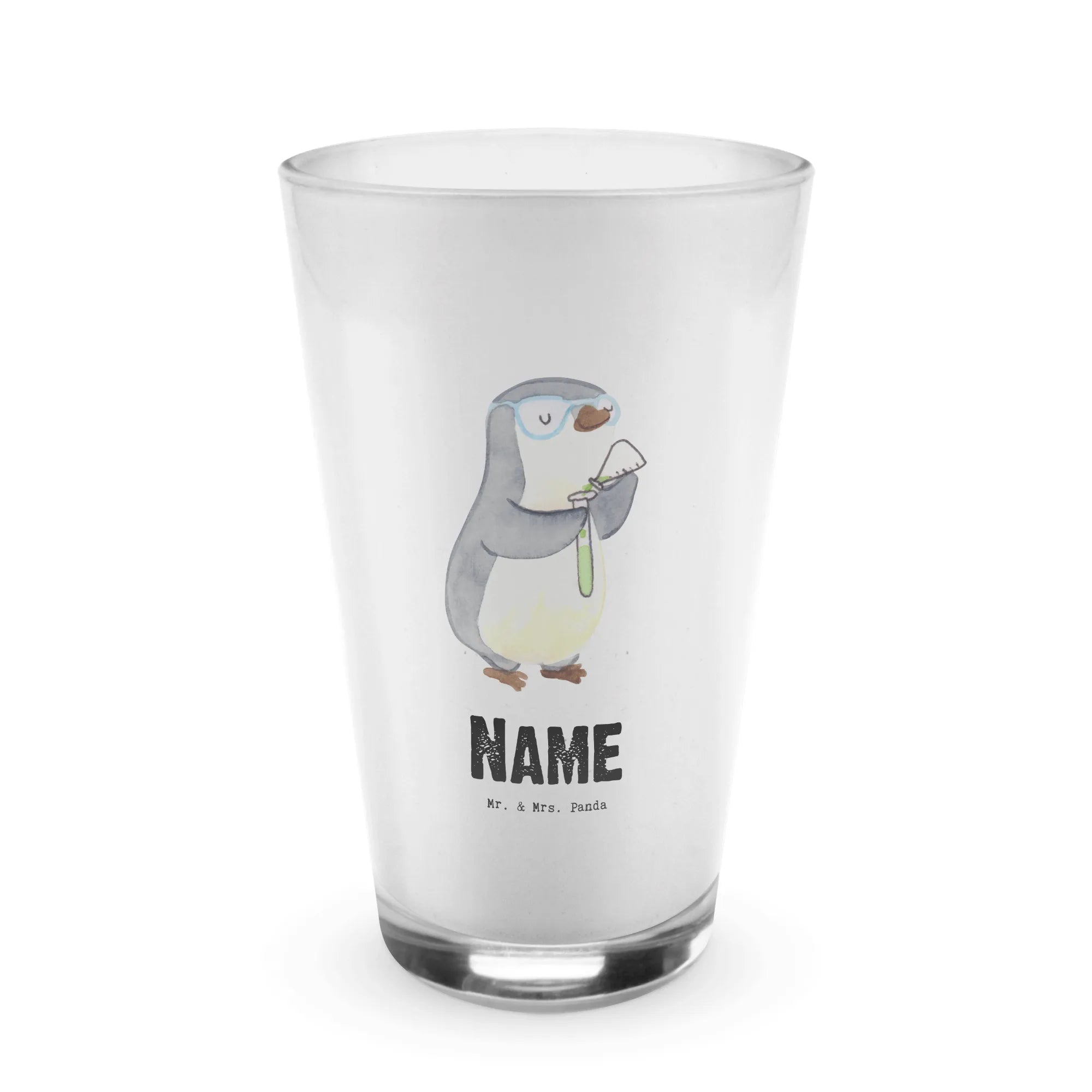 Das perfekte Geschenk für Chemiker*innen mit Herz! 💙 Dieses personalisierte Glas „Chemiker mit Herz" von Mr. & Mrs. Panda trifft genau ins Schwarze, wenn du einem Chemiker, Chemielaboranten oder einer naturwissenschaftlich begeisterten Kollegin eine liebevolle Freude machen möchtest. Der fröhliche Pinguin mit Reagenzglas und der Spruch „Du bist nur ein halber Mensch, wenn du kein Chemiker bist.“ sorgen für Lacher und ein Lächeln bei jeder Kaffepause.
