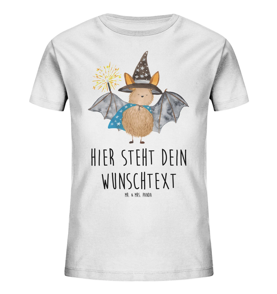 Entdecke das wunderschöne personalisierte Kinder T-Shirt von Mr. & Mrs. Panda mit dem süßen Motiv 'Fledermaus Zauberer'. Dieses T-Shirt ist der perfekte Begleiter für kleine Abenteurer, die die Magie der Nacht entdecken möchten.