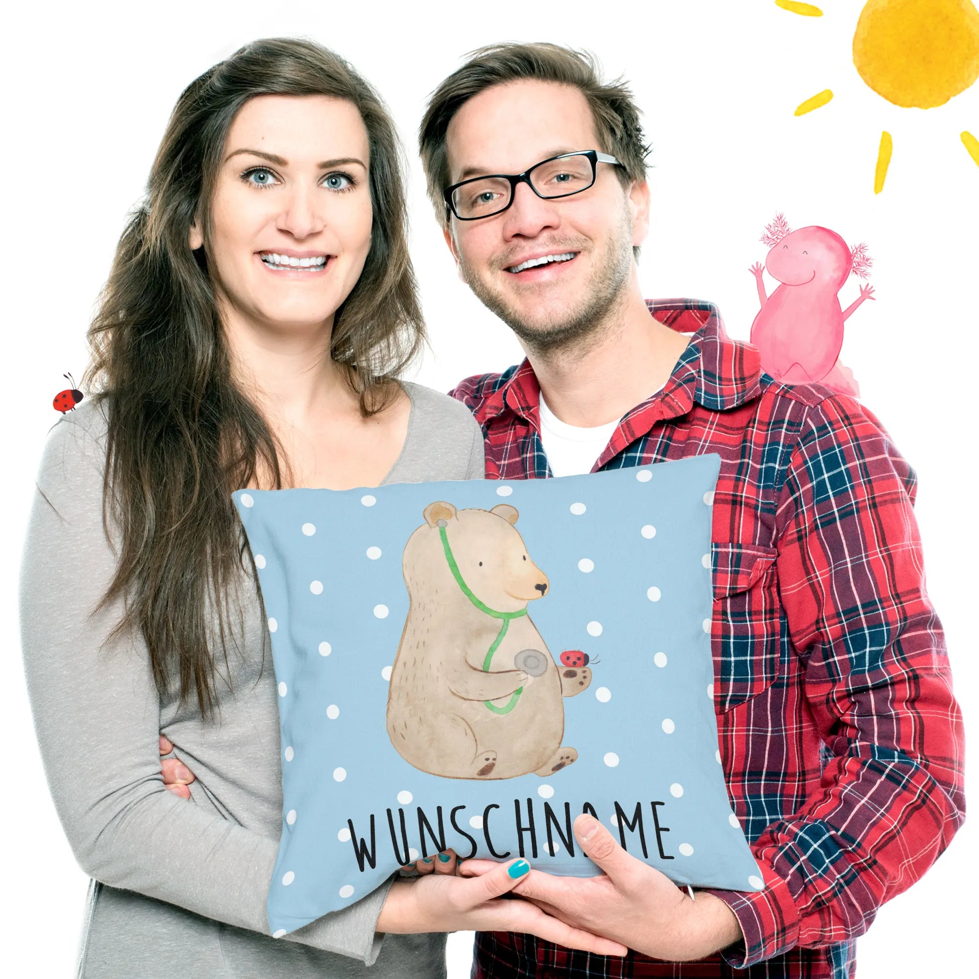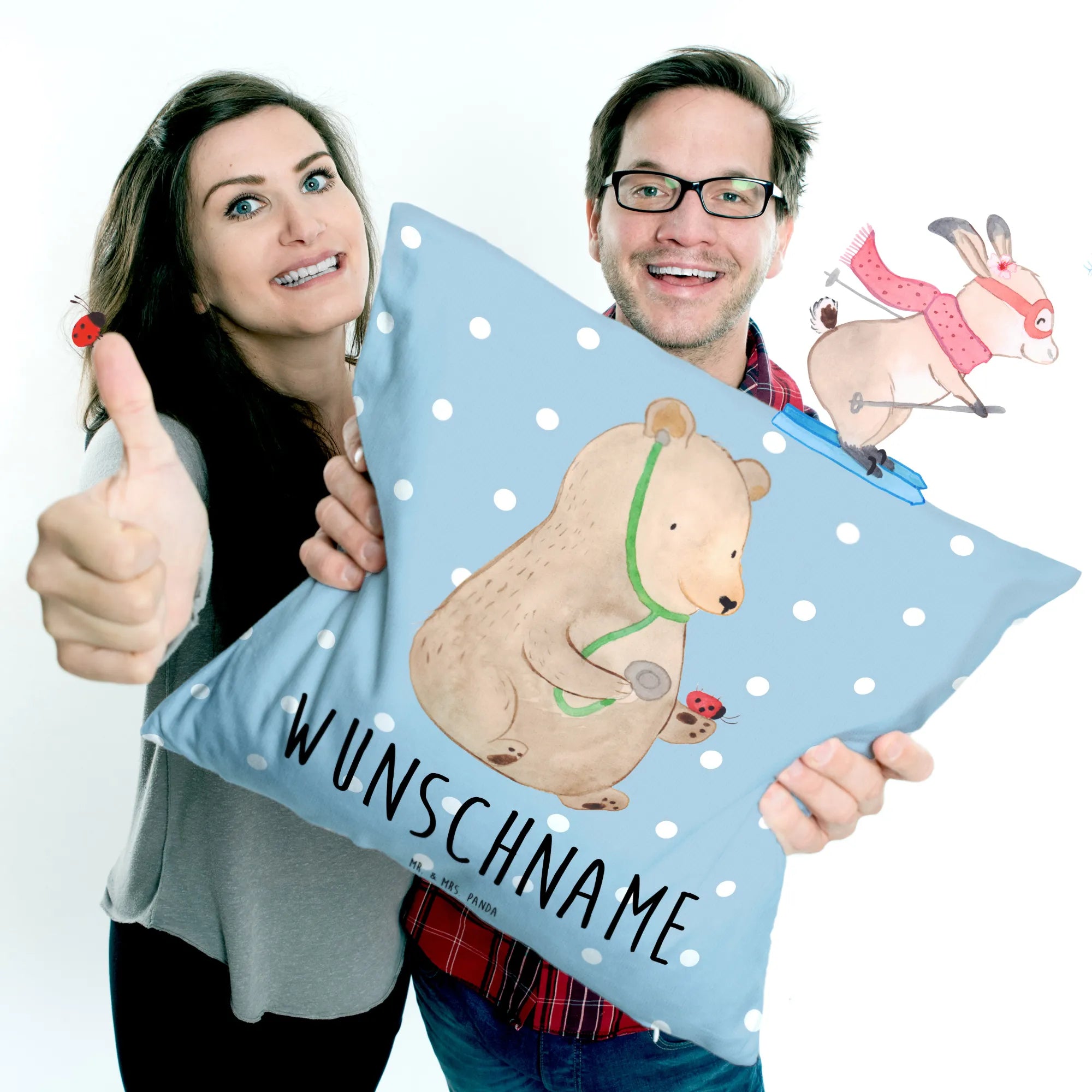 Das personalisierte Kissen "Bär Arzt" von Mr. & Mrs. Panda ist der perfekte Begleiter für alle, die eine besondere und individuelle Note in ihrem Zuhause schätzen. Ideal zum Verschenken oder Selberbehalten, dient dieses Kissen nicht nur als stilvolles Deko-Element, sondern auch als praktisches Sofakissen. Mit einem flauschigen und hochwertigen Mikrofaserbezug ist es der Inbegriff von Gemütlichkeit.
