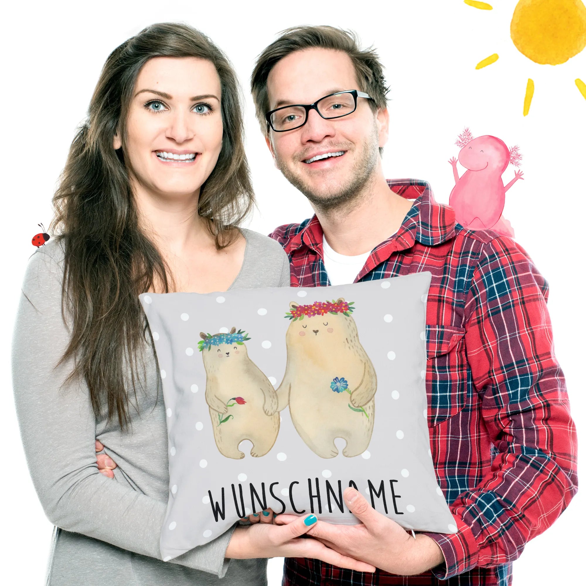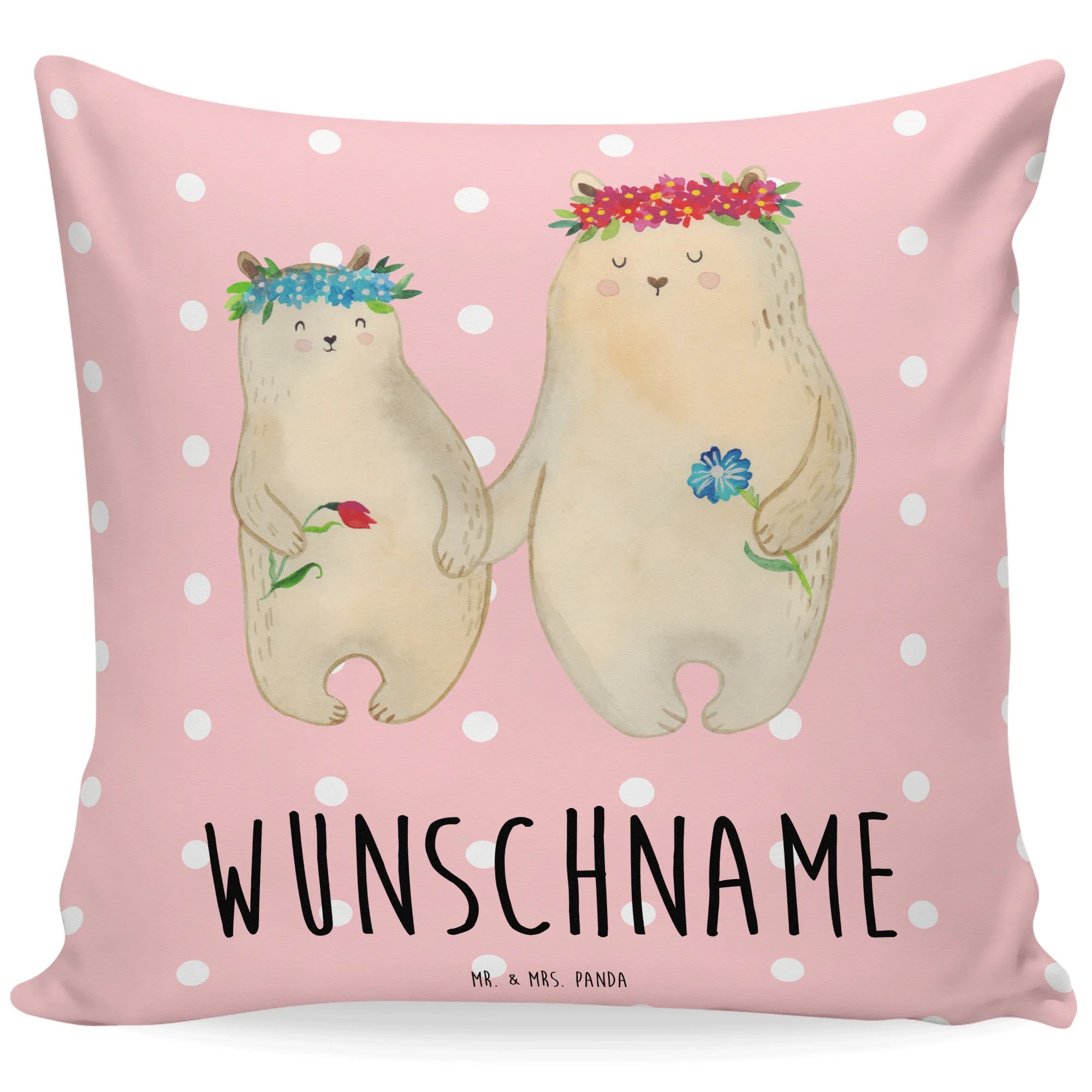 Entdecke das perfekte personalisierte Kissen von Mr. & Mrs. Panda! Mit dem liebevollen Motiv der Bären mit Blumenkranz wird dieses Kissen zu einem ganz besonderen Geschenk für die weltbeste Mama oder die Lieblingsmama. Egal ob zum Muttertag, zum Geburtstag oder einfach nur so als kleine Überraschung – dieses Kissen drückt Deine Wertschätzung und Liebe aus!