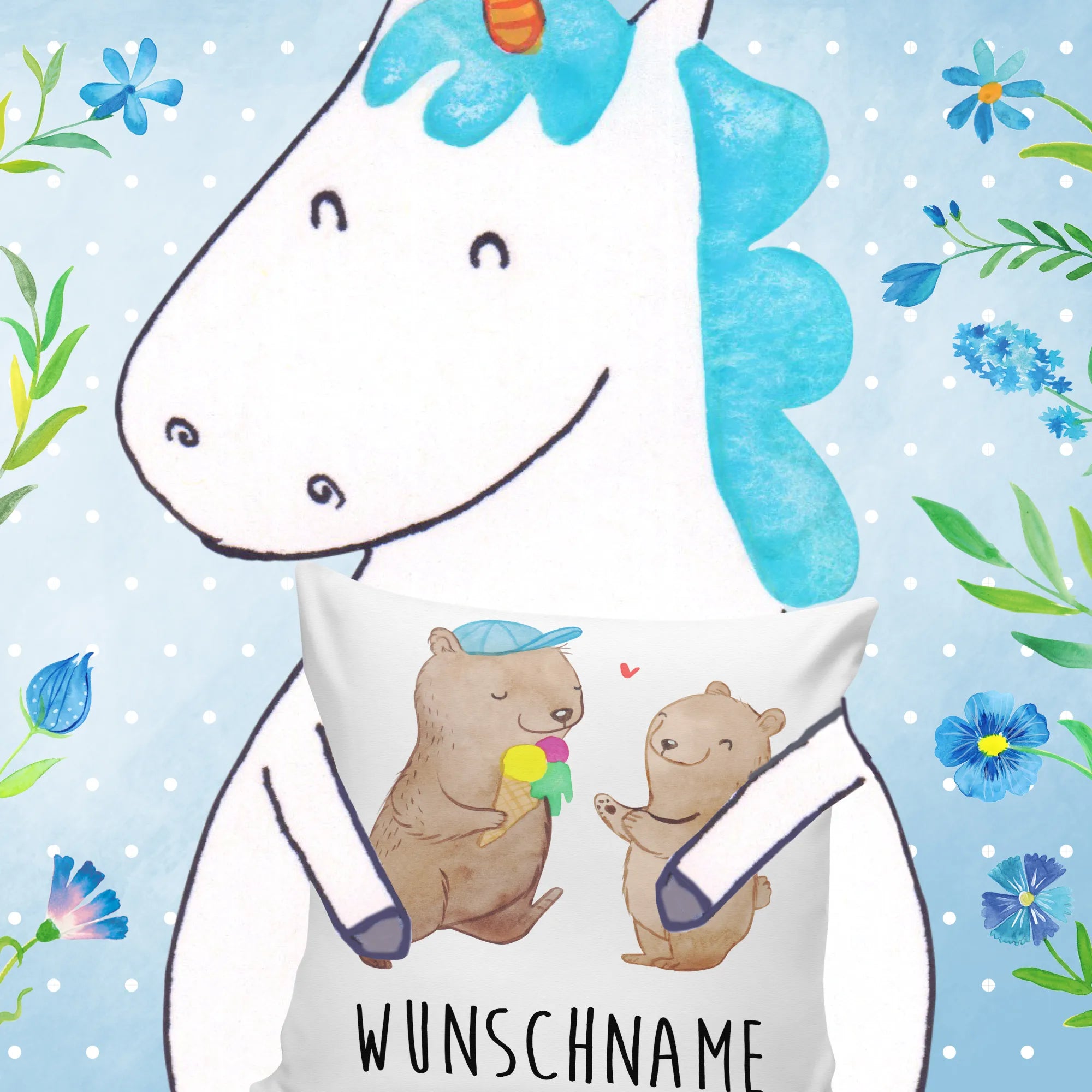 🐼 Gestalte dein Kissen mit Namen oder Datum.