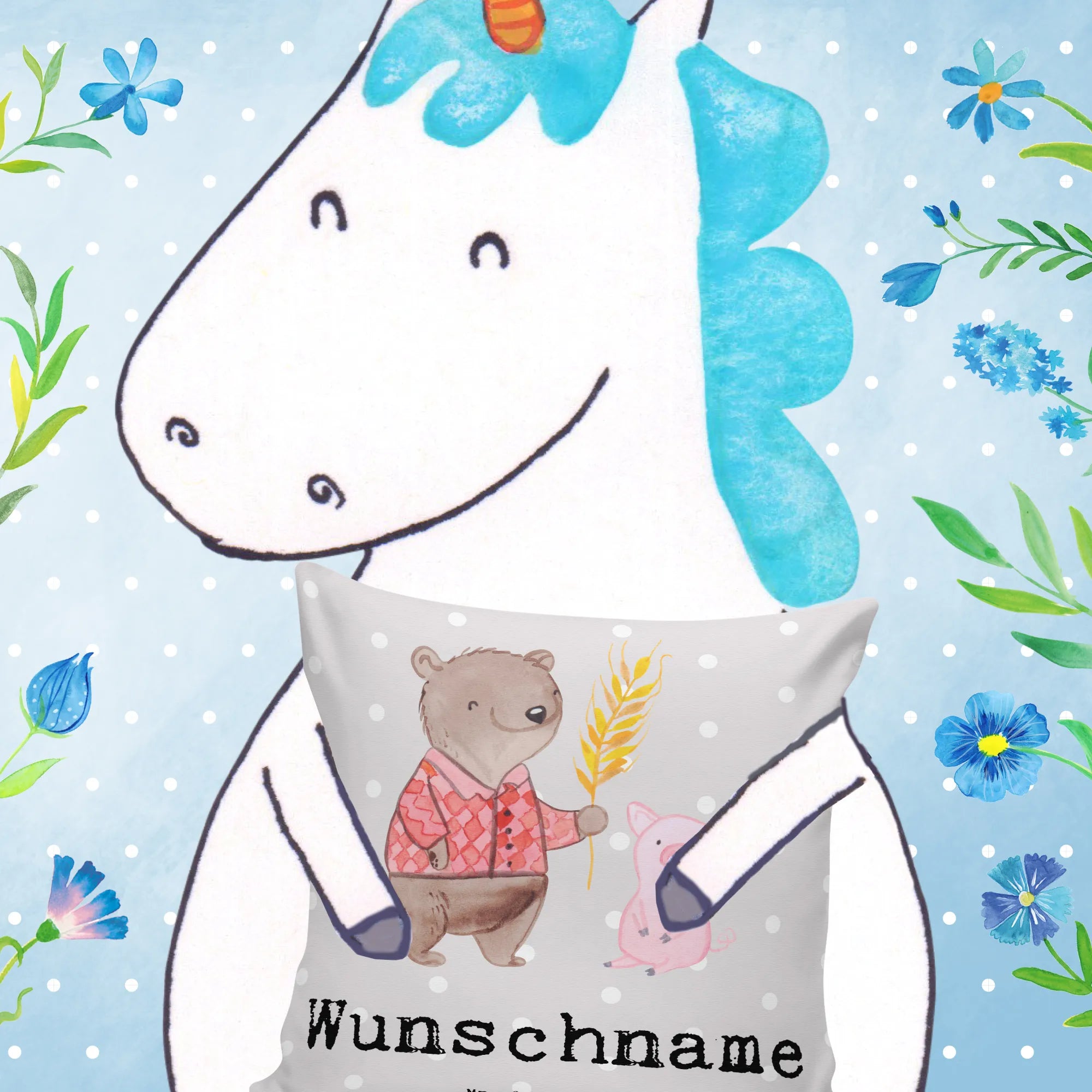 Das personalisierte Kissen "Bauer mit Herz" von Mr. & Mrs. Panda ist das perfekte Geschenk für alle, die den landwirtschaftlichen Beruf mit Leidenschaft ausüben! Egal ob du selbst Landwirt, Bauer oder Tierwirt bist oder einen lieben Kollegen, Freund oder Familienmitglied beschenken möchtest - dieses Kissen ist ein echter Hingucker und bringt ein Stück Bauernhof-Flair in jedes Zuhause. Der niedliche Bär, der in einem karierten Hemd mit einer Handvoll Getreide posiert, zusammen mit dem Spruch "Du bist nur ein halber Mensch, wenn du kein Bauer bist" macht das Kissen zu einem ganz besonderen Geschenk für jeden, der die Arbeit auf dem Feld schätzt.