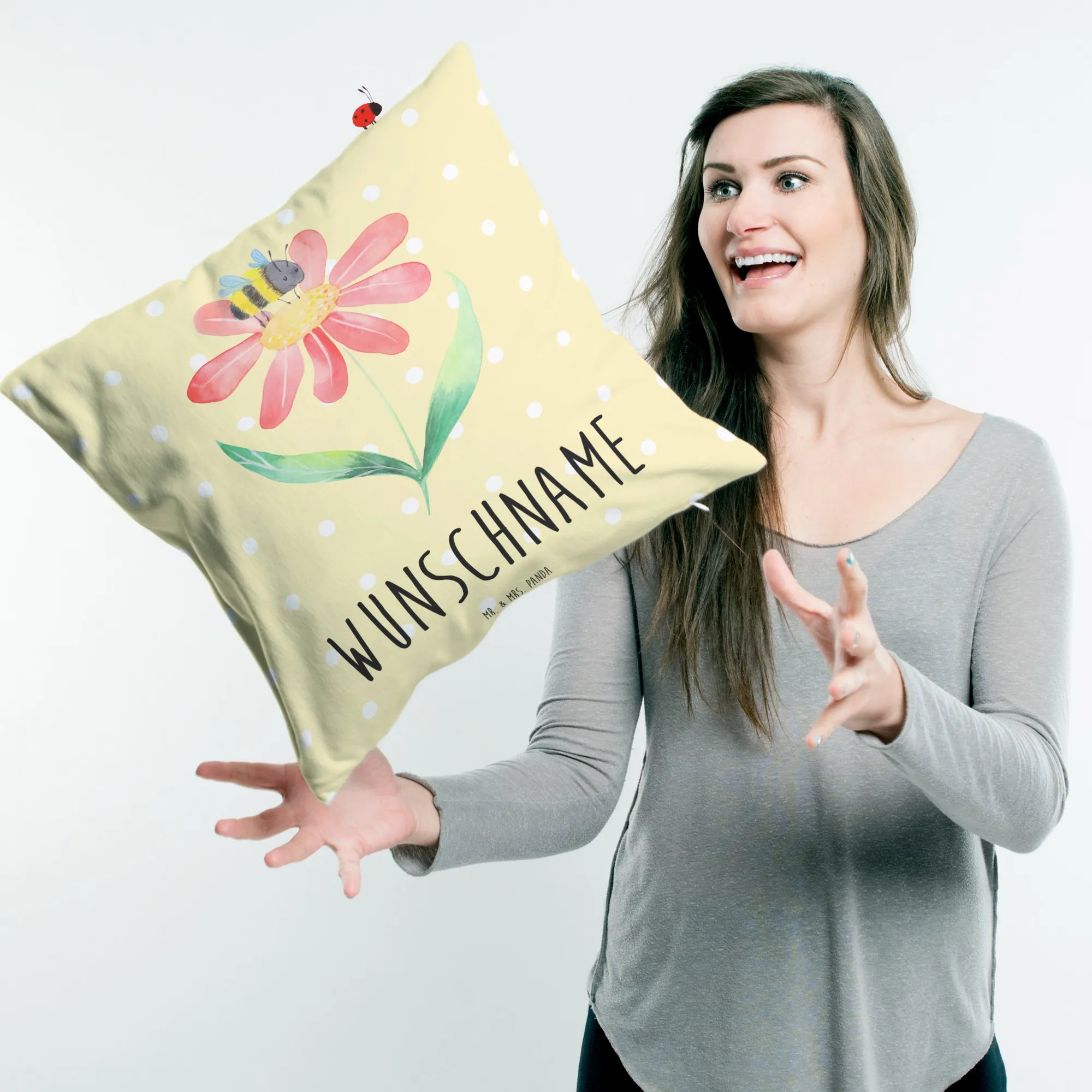 Zauberhaftes personalisiertes Kissen „Hummel Blume“ 🐝🌼 – hol dir das fröhliche Summen der Natur nach Hause! Die liebenswerte Hummel auf der Blüte wurde von Mrs. Panda mit Aquarell liebevoll gezeichnet und bringt mit kräftigen Farben und Pastell-Gelb Hintergrund sofort gute Laune in jedes Zimmer.