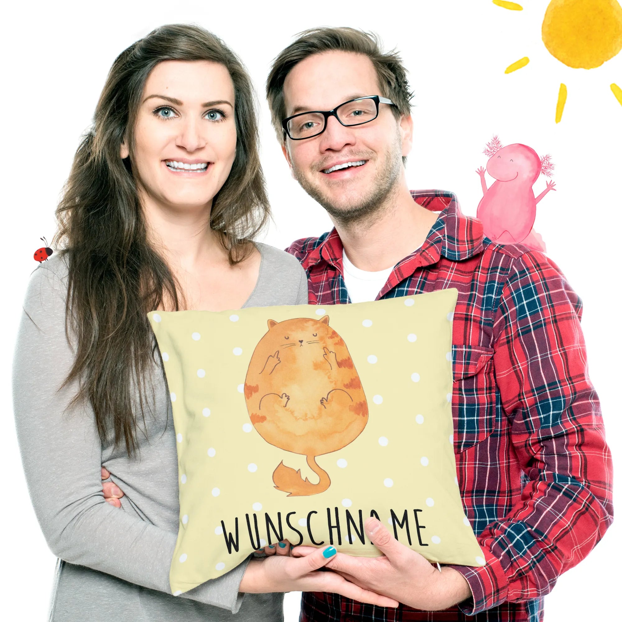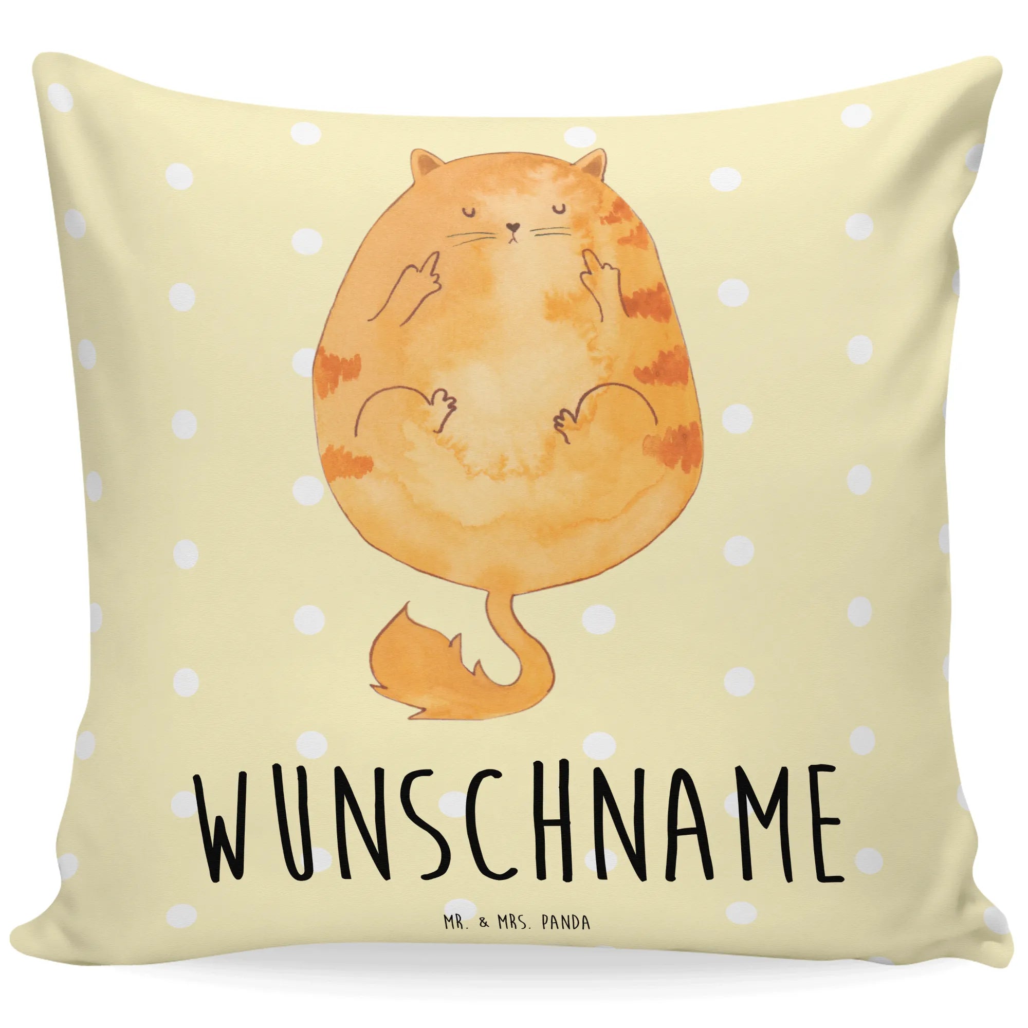 Wenn du auf der Suche nach einem ganz besonderen Geschenk für einen Katzenliebhaber bist, dann ist unser personalisiertes Kissen mit dem süßen Katzenmotiv „Mittelfinger“ genau das Richtige! Dieses Kissen von Mr. & Mrs. Panda kombiniert liebevolles Design mit einer Prise Humor und wird garantiert ein Lächeln auf das Gesicht deines Beschenkten zaubern.