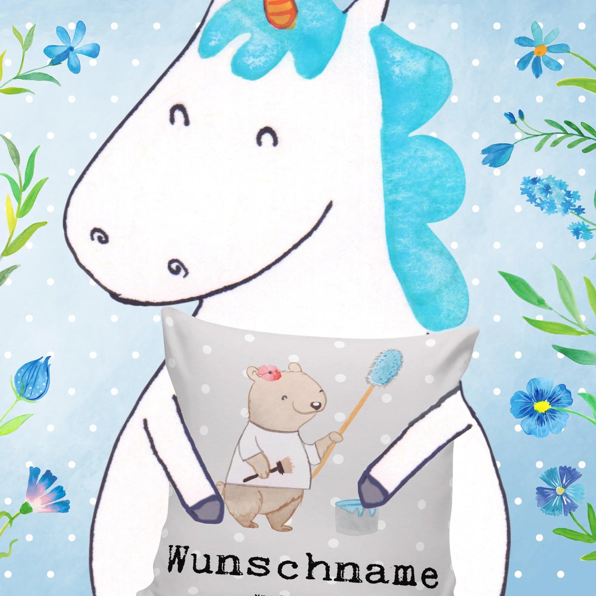 Hantieren mit Farben, Trocknen der Pinsel und das Verschönern von Räumen – all das steckt im Herzen einer Malerin. Mit diesem Kissen zeigst du, dass du die Leidenschaft und die harte Arbeit der Maler und Malerinnen wertschätzt. Schenke diesen kleinen persönlichen Schatz und zaubere ein Lächeln ins Gesicht der Malerin oder des Malers in deinem Leben. Schenke Freude mit dem personalisierten Kissen von Mr. & Mrs. Panda!