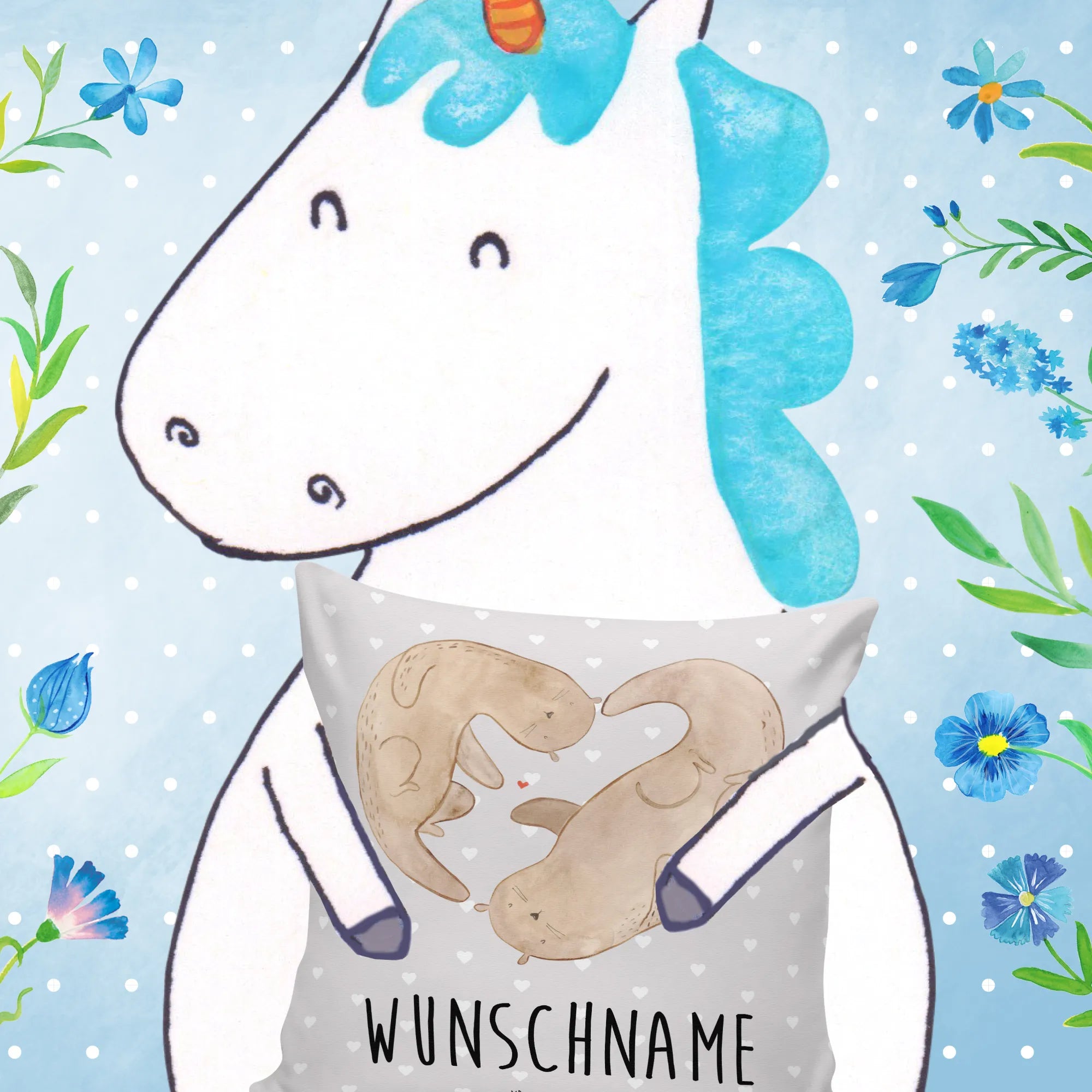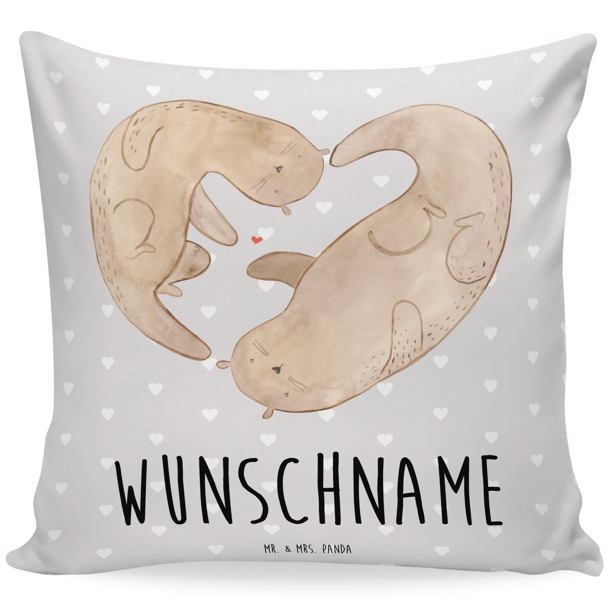 Das Personalisiertes Kissen "Otter Valentine" von Mr. & Mrs. Panda ist nicht nur ein Kissen, sondern ein echtes Liebesgeschenk für deine liebsten Menschen. Es ist perfekt für all jene, die etwas Besonderes zum Valentinstag, Jahrestag oder Hochzeitstag suchen. Was könnte schöner sein, als einem geliebten Partner oder einer Freundin ein Kissen zu schenken, das mit dem eigenen Namen personalisiert ist? Das Bild zeigt zwei süße Otter, die sich an den Pfoten halten und ein Herz formen – eine Darstellung von Zuneigung und Verbundenheit. Durch unser drolliges Motiv strahlt das Kissen pure Liebe aus und erinnert jeden Tag an die schöne Beziehung, die ihr teilt.