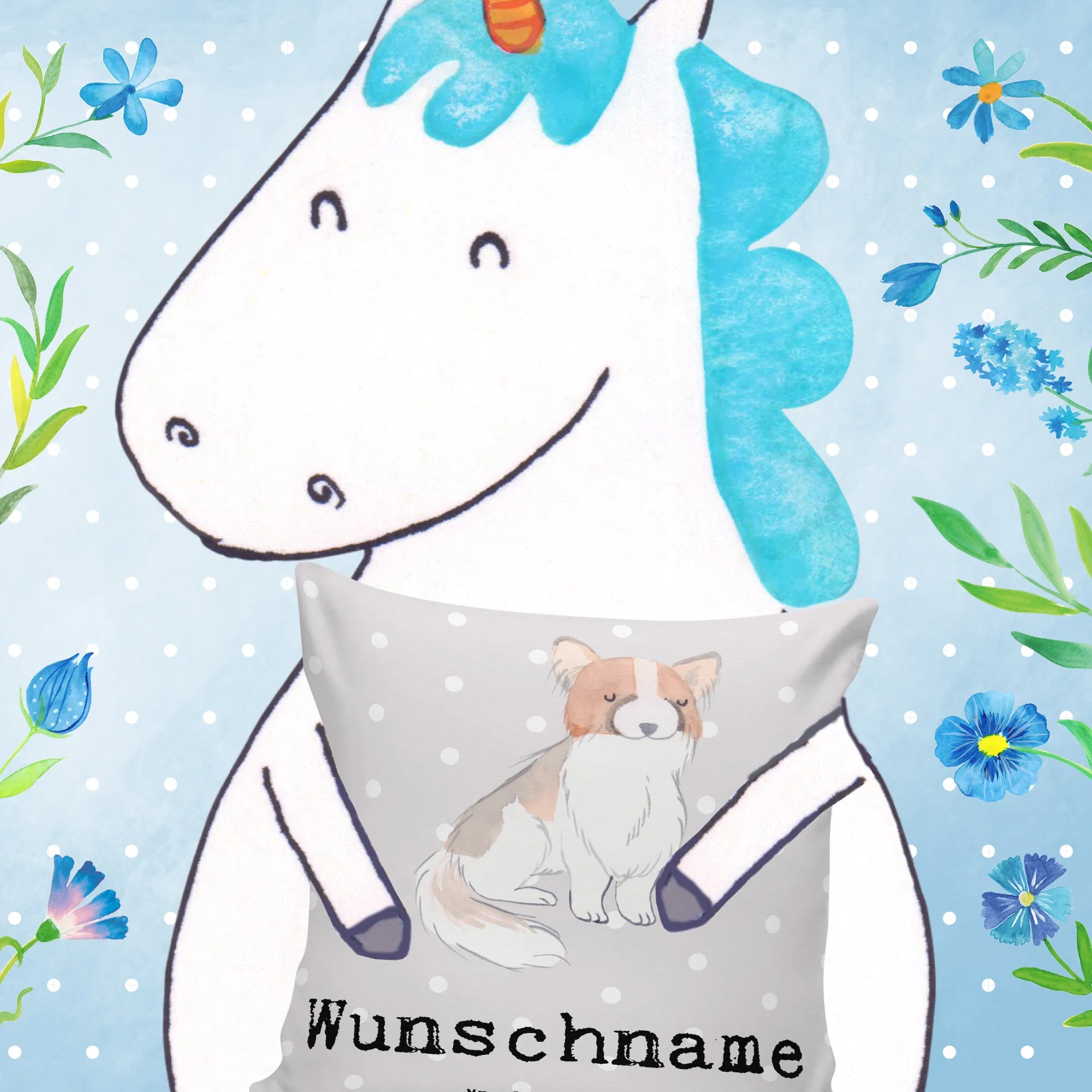 Wenn Du ein besonderes Geschenk für einen Hundeliebhaber suchst, dann ist unser personalisiertes Kissen mit dem süßen Papillon-Motiv genau das Richtige! Das Kissen ist nicht nur einfach ein Kissen; es ist ein wunderschönes Stück, das mit liebevollen und fröhlichen Motiven von Mr. & Mrs. Panda bedruckt ist. Das zauberhafte Bild zeigt einen Papillon-Hund in sanften Aquarellfarben, der sofort die Herzen aller Hundefreunde erobert. Mit dem Slogan "Mein Lebensretter ist ein Papillon" auf dem Kissen wird die besondere Bindung zwischen Hund und Besitzer perfekt zum Ausdruck gebracht.