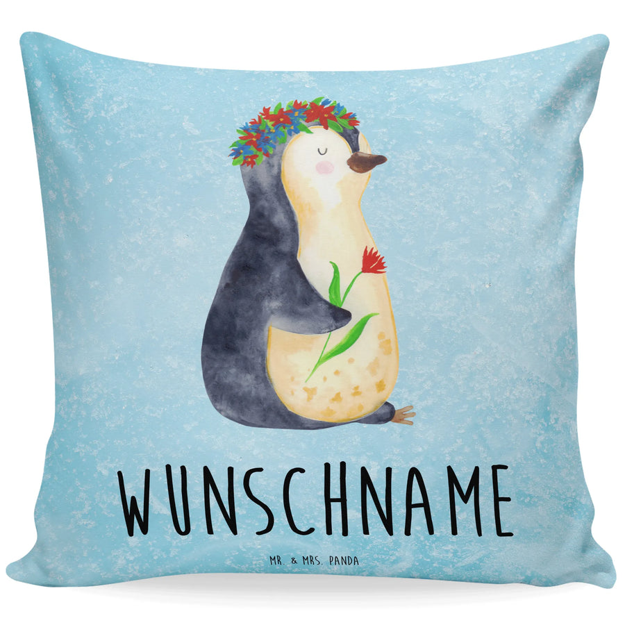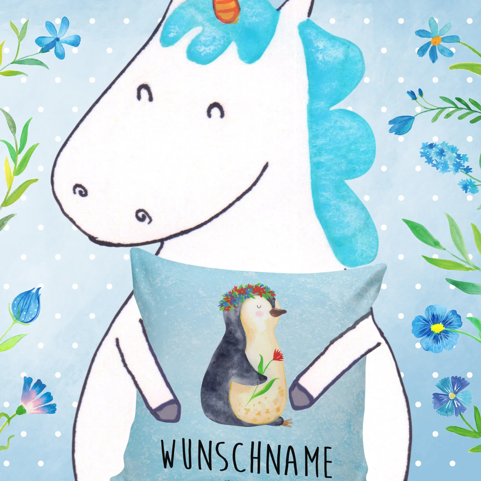 Das personalisierte Kissen von Mr. & Mrs. Panda mit dem niedlichen Pinguin Blumenkranz ist das perfekte Geschenk für alle, die das Leben lieben und gerne ihre Wünsche und Träume verwirklichen möchten. Dieses Kissen ist mehr als nur ein Wohnaccessoire; es ist ein Ausdruck deiner Lebensfreude und Motivation!