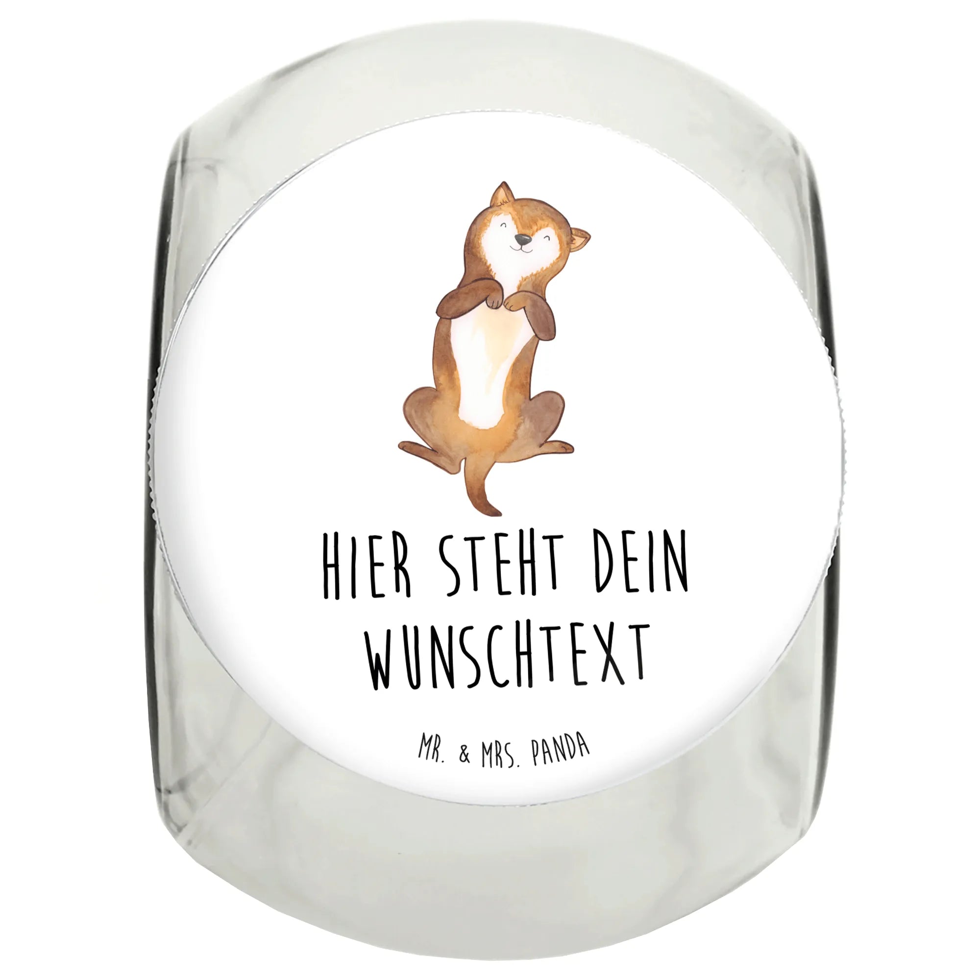 Das personalisierte Leckerli Glas mit dem süßen Motiv "Hund Bauchkraulen" von Mr. & Mrs. Panda ist das perfekte Geschenk für alle Hundeliebhaber. Mit einem Platz für deinen Wunschtext wird es zu einem individuellen Highlight in deinem Zuhause.
