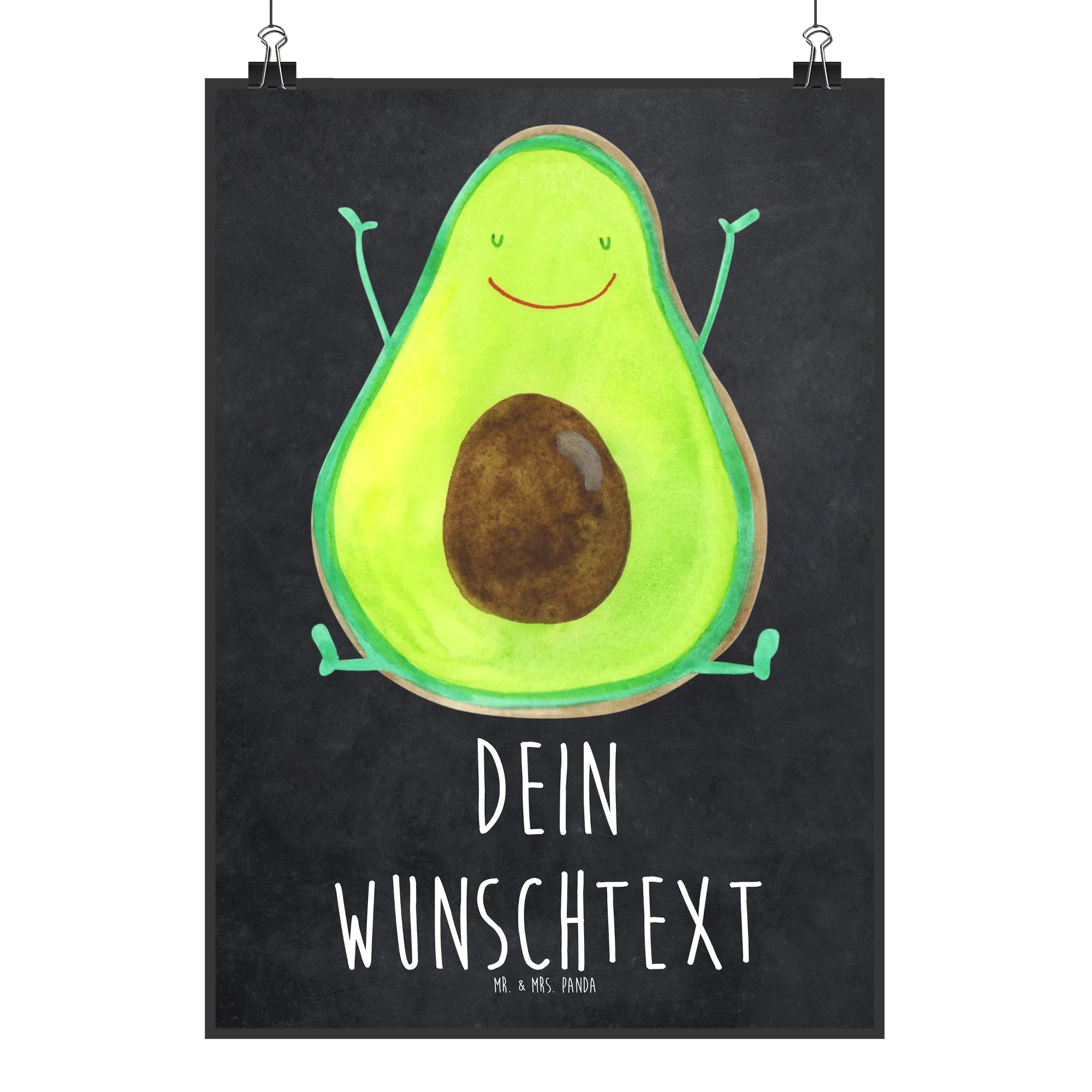 Die charmante Avocado, die begeistert ihre Hände nach oben hebt, symbolisiert Freude und Optimismus. Das Poster bietet die Möglichkeit, mit einem eigenen Wunschtext zu personalisieren, sodass Du eine einzigartige Note hinzufügen kannst.