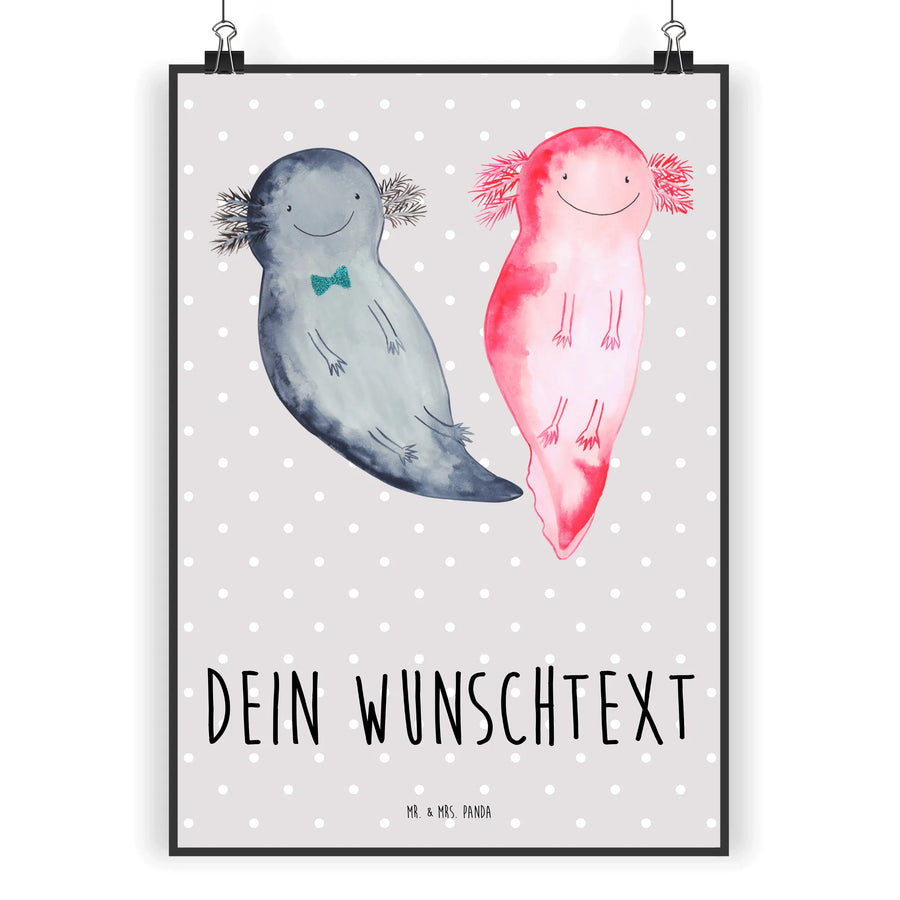 Das personalisierte Poster mit dem süßen Motiv Axolotl Axel+Lotte von Mr. & Mrs. Panda ist das perfekte Geschenk für jeden, der niedliche Tiere und einzigartige Kunstwerke liebt. Tauche ein in die faszinierende Unterwasserwelt mit diesem wunderschönen Wandposter, das nicht nur wunderschön aussieht, sondern auch eine persönliche Note hat.