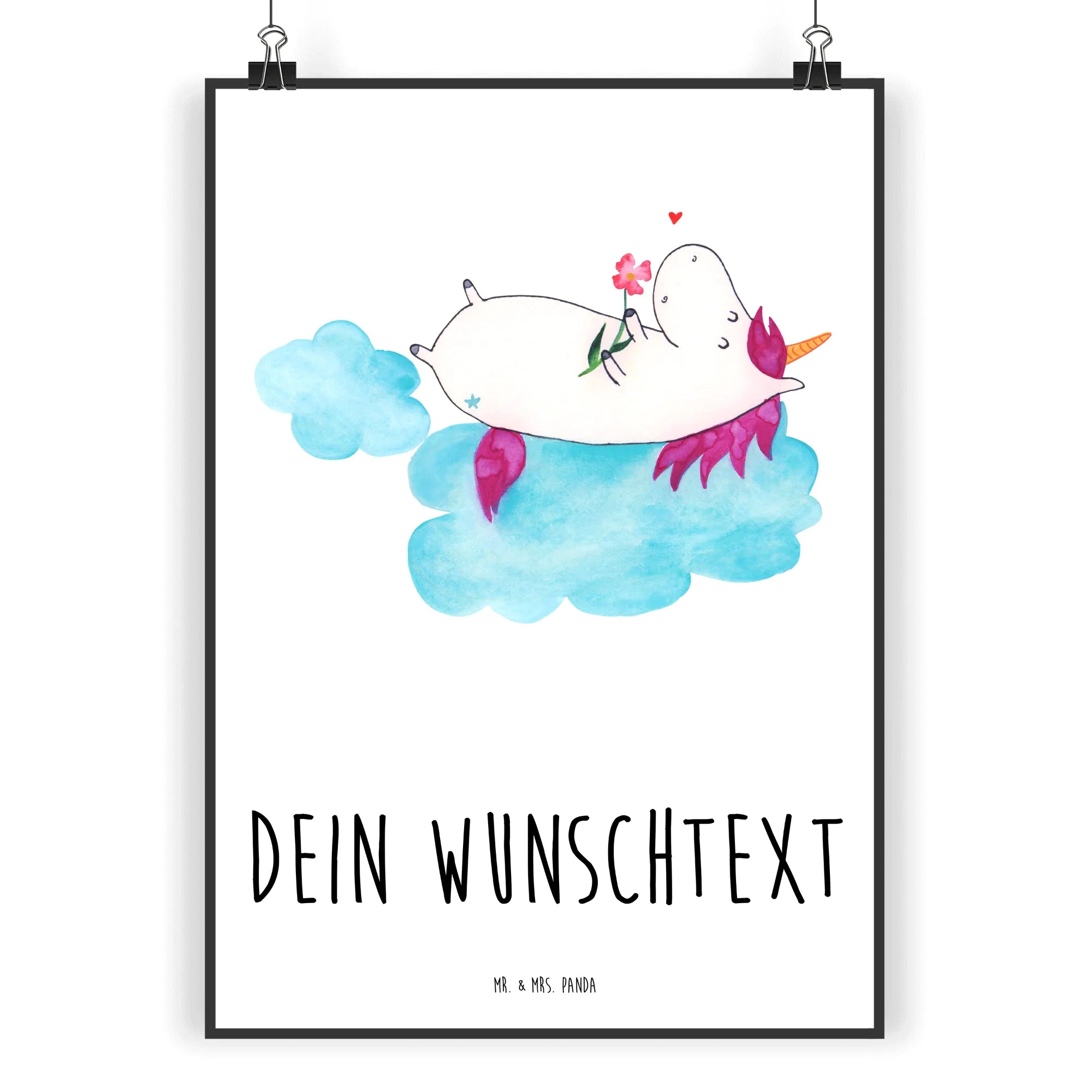 Entdecke das zauberhafte personalisierte Poster "Einhorn verliebt auf Wolke" aus der exklusiven Einhorn-Kollektion von Mr. & Mrs. Panda! Dieses Poster ist eine perfekte Mischung aus Liebe, Spaß und einem Hauch von Magie – ideal für alle Einhornliebhaber!