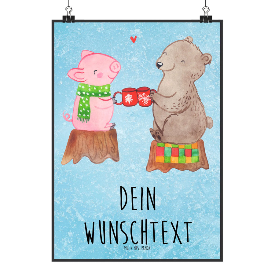 Das personalisierte Poster "Glühschwein Sause" aus der bezaubernden Winter Kollektion von Mr. & Mrs. Panda ist ein wahrhaft einzigartiges Geschenk, das Freude und Wärme in jedes Zuhause bringt. Es zeigt ein niedliches Szenario, das dich sofort in festliche Stimmung versetzt. Auf diesem liebevoll gestalteten Poster siehst du ein fröhliches Schweinchen mit einem Schal und einen Bären, die gemeinsam auf einem Baumstumpf sitzen und mit einer Tasse anstoßen. Ein kleines Herzchen verbindet die beiden und bringt somit eine Botschaft der Freundschaft und des Feierns zum Ausdruck.
