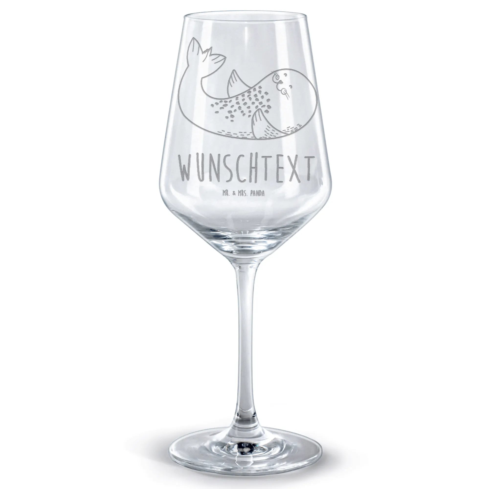 Personalisiertes Rotwein Glas Robbe Liegen