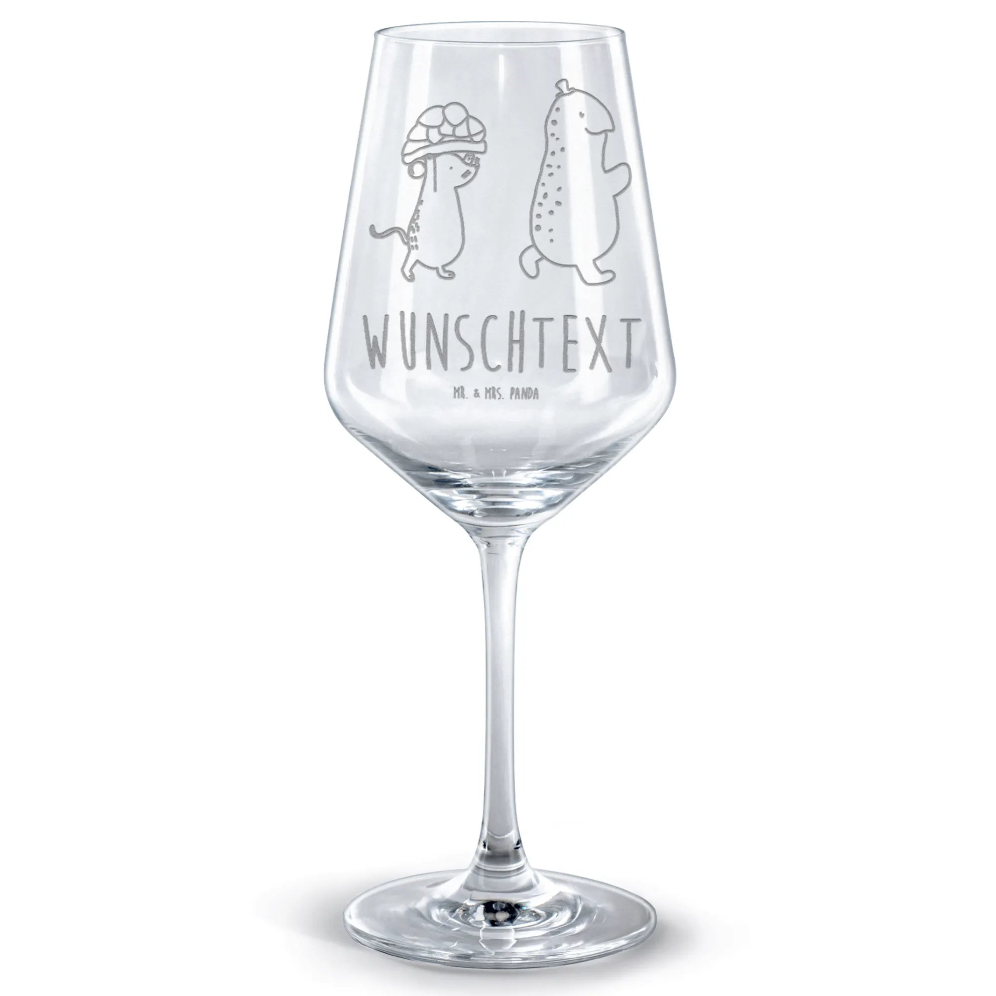 Das personalisierte Rotweinglas mit dem niedlichen Motiv der Schildkröte und Maus von Mr. & Mrs. Panda ist das perfekte Geschenk für alle Weinliebhaber!
