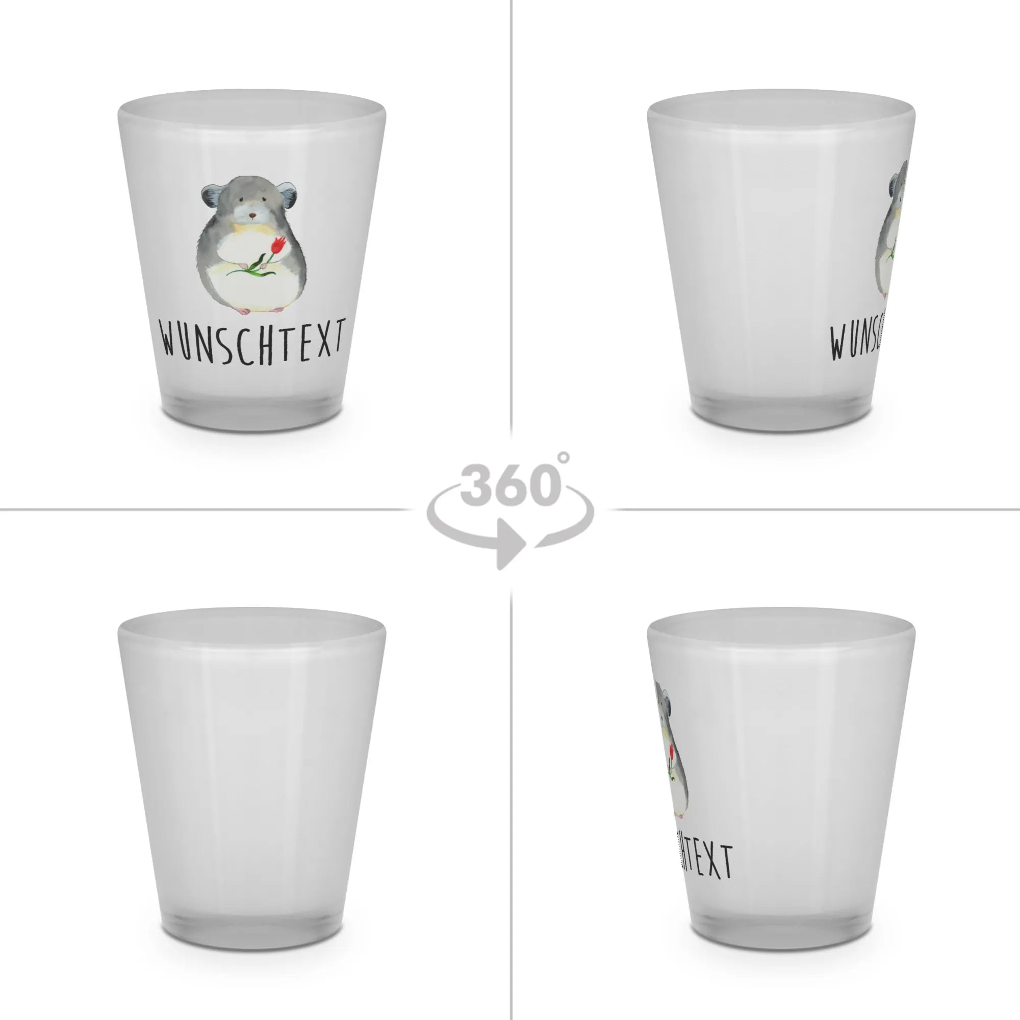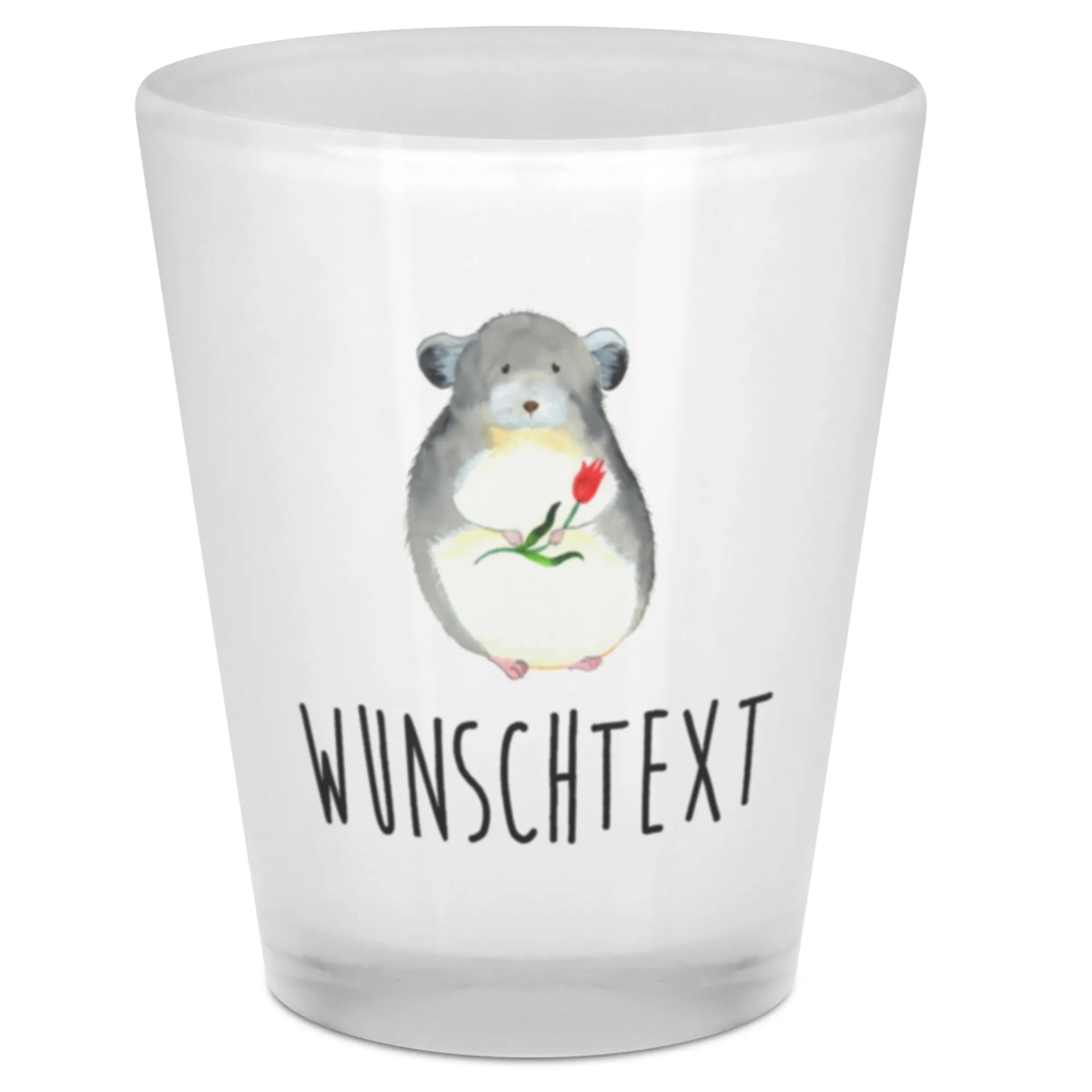 Das personalisierte Schnapsglas "Chinchilla mit Blume" aus der Small World Kollektion von Mr. & Mrs. Panda ist das perfekte Geschenk für jeden Tierliebhaber und sorgt für gute Laune in jedem Büroalltag! Die Kombination aus einem niedlichen Chinchilla, das mit großen Augen und einer Blume in der Hand da steht, zusammen mit dem liebevollen Slogan "Und bei dem ganzen Chaos im Alltag, vergiss niemals das Glücklichsein." macht dieses Schnapsglas unverwechselbar.