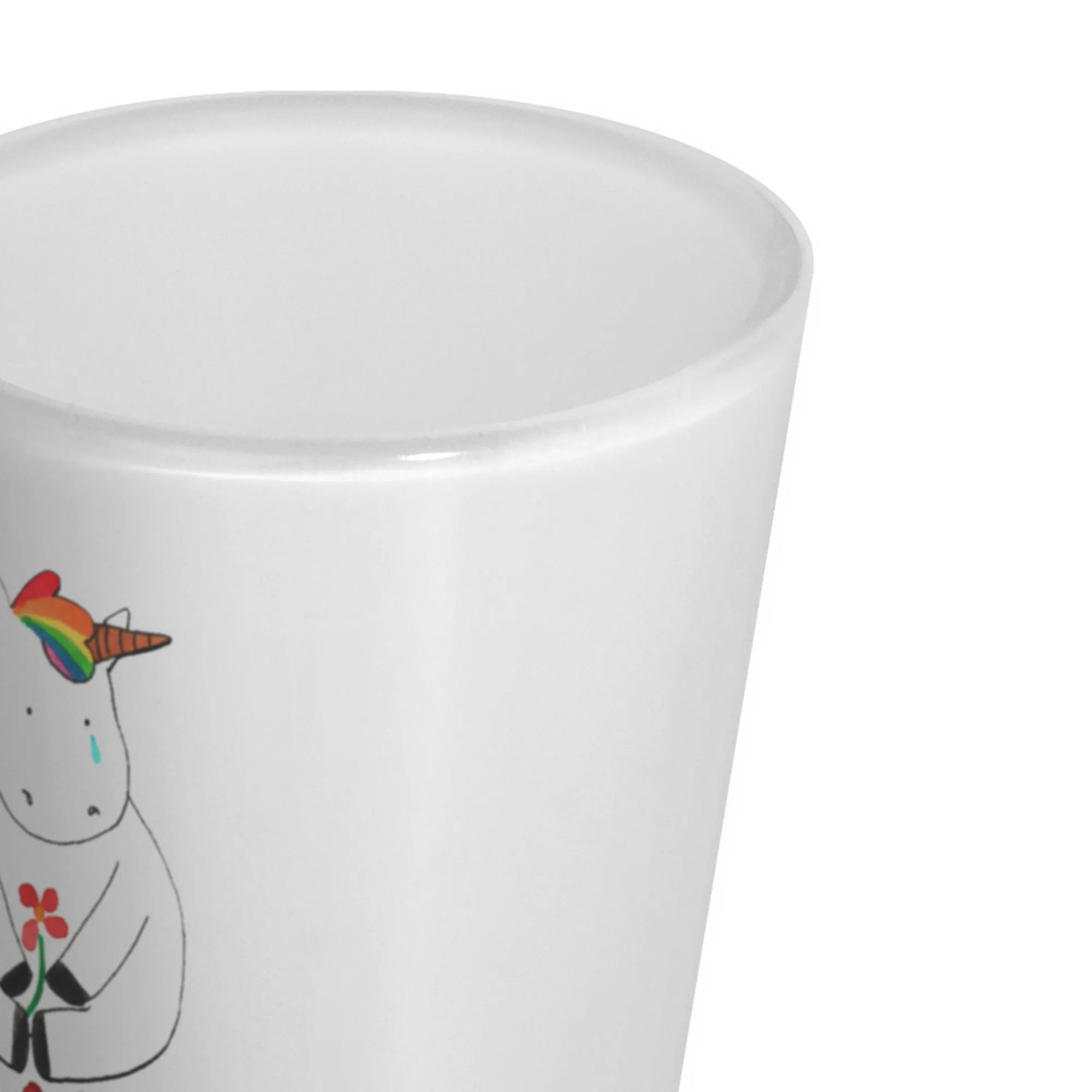 Wenn du auf der Suche nach einem liebevollen und originellen Geschenk bist, das gleichzeitig eine persönliche Note hat, dann ist das personalisierte Schnapsglas mit dem traurigen Einhorn aus der Einhorn-Kollektion von Mr. & Mrs. Panda die perfekte Wahl! Lass die Traurigkeit hinter dir und bringe Glitzer in das Leben deiner Freunde und Familien. Verschenke Freude, Liebe und eine kleine Portion Feenstaub – mit diesem einzigartigen Schnapsglas, das so individuell ist wie der Name darauf!