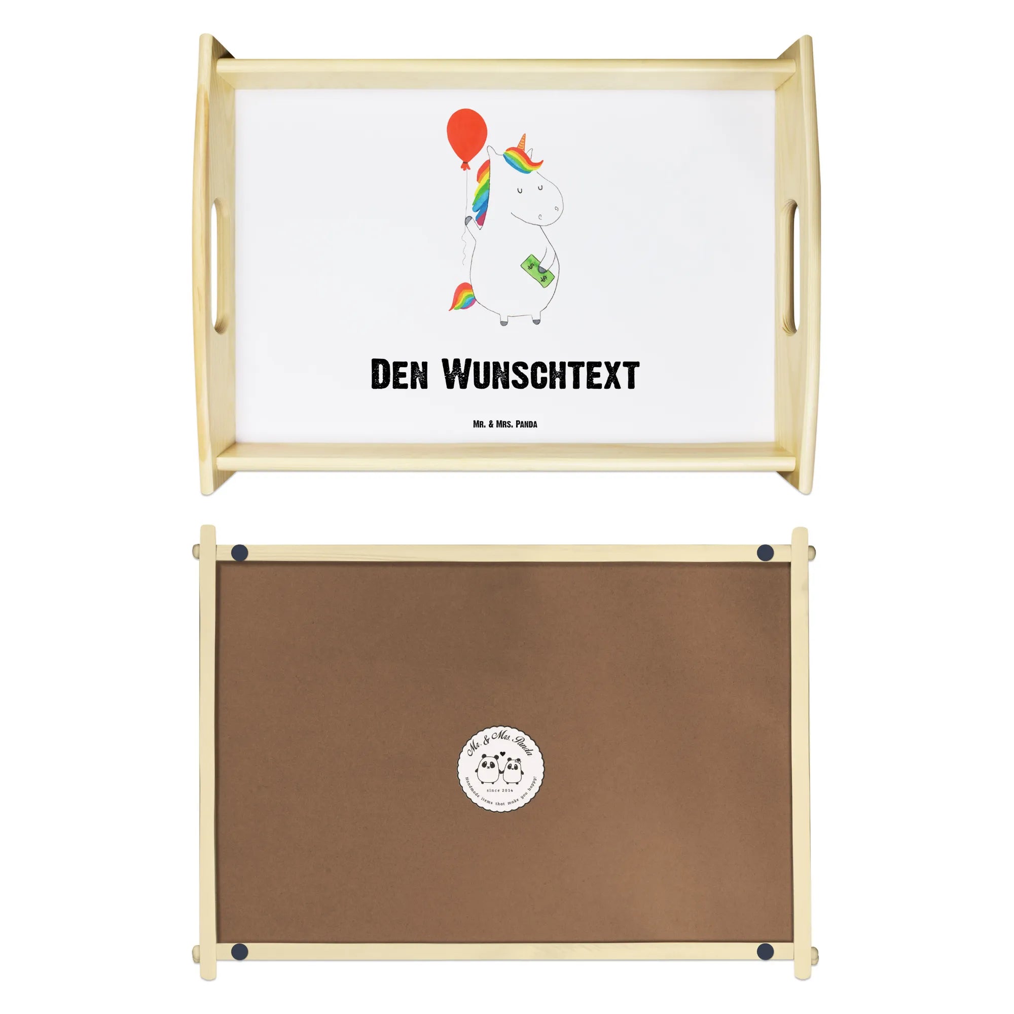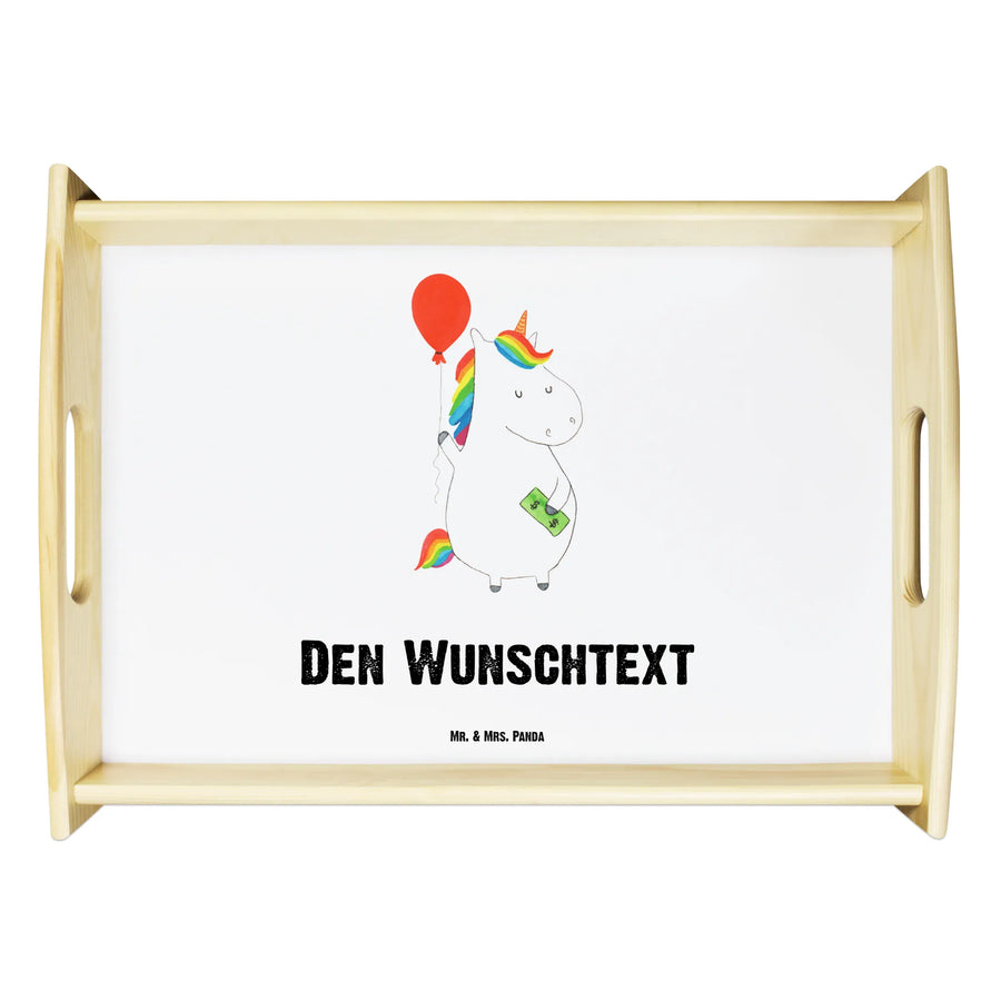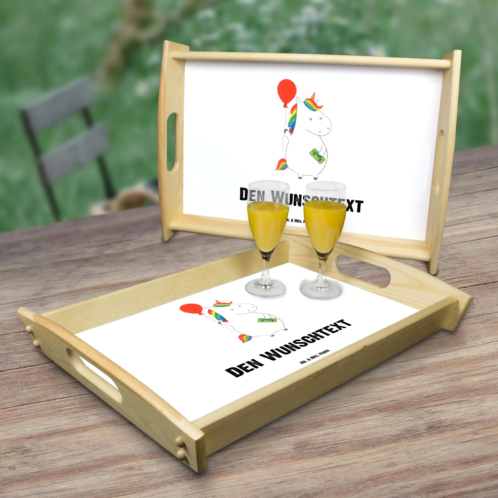 Das personalisierte Serviertablett Einhorn Luftballon von Mr. & Mrs. Panda ist das perfekte Geschenk für Einhorn-Fans und Lebensfreudige! Mit einem zauberhaften, handgezeichneten Motiv eines Einhorns, das mit einem Luftballon in der Hand die Welt umarmen möchte, zaubert es ein Lächeln auf jedes Gesicht. Egal, ob zum Geburtstag, zu Weihnachten oder einfach nur als kleine Aufmerksamkeit für die beste Freundin - dieses Tablett ist ein wahrhaft einzigartiges Geschenk.