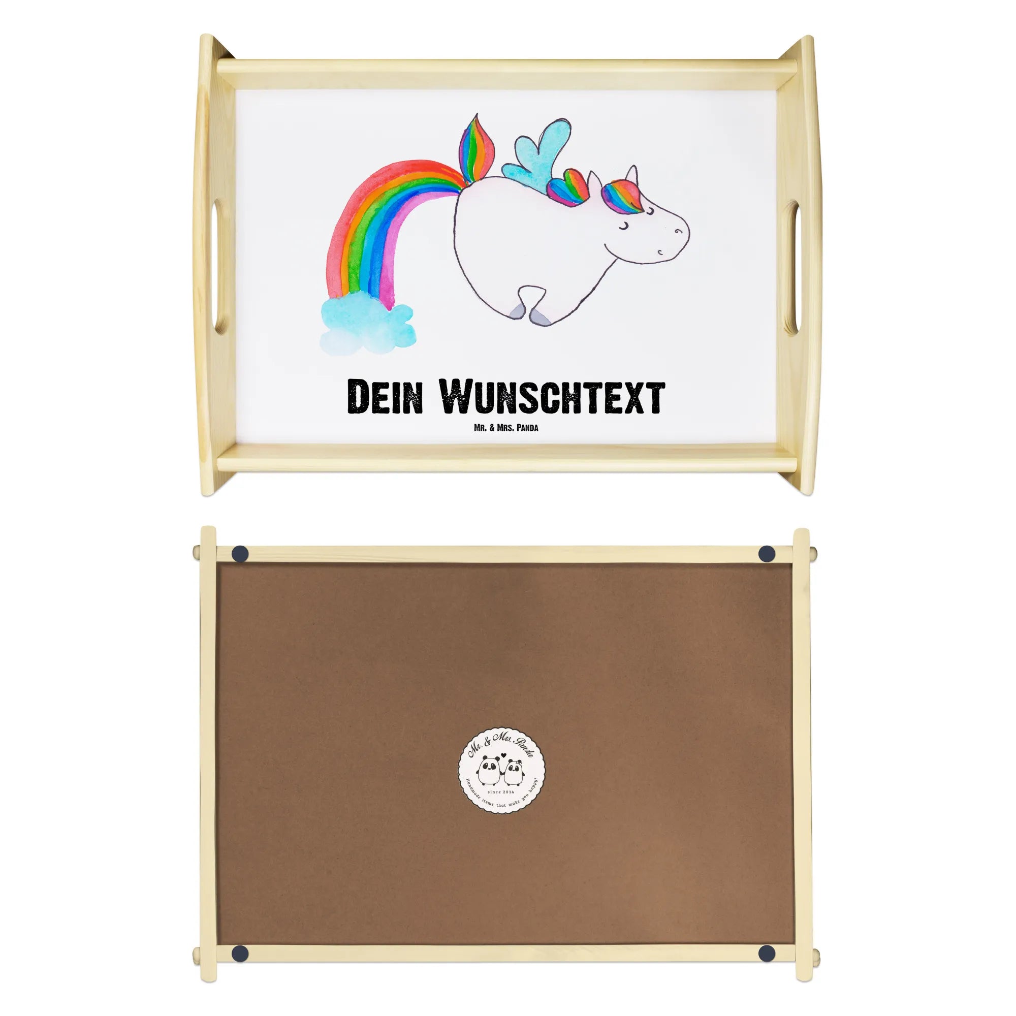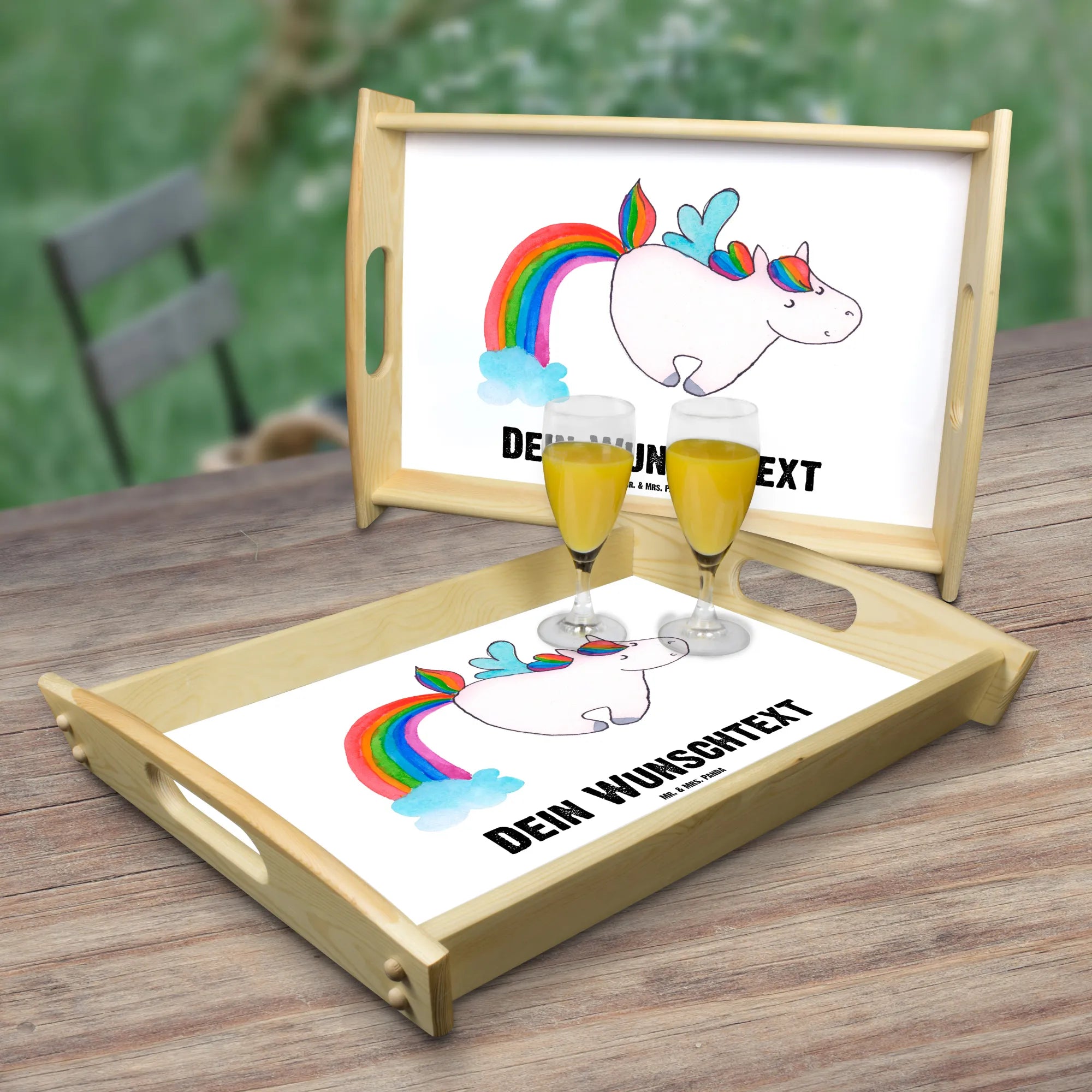 Das personalisierte Serviertablett Einhorn Fliegendes Pferd von Mr. & Mrs. Panda ist das perfekte Geschenk für alle Einhornliebhaber und Fans von zauberhaften Motiven. Mit seinem unwiderstehlichen Design, das ein fröhliches Einhorn zeigt, das durch die Lüfte fliegt, bringt dieses Tablett die zauberhafte Welt der Fantasie direkt in dein Zuhause.