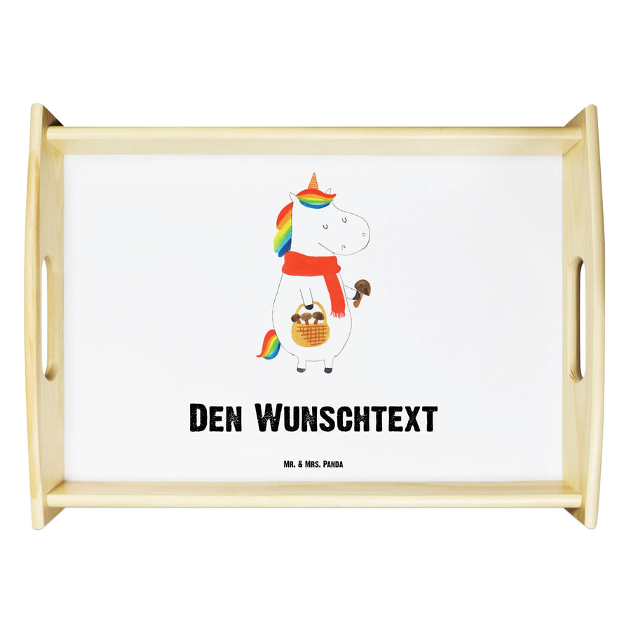 Das Personalisiertes Serviertablett misst 480 mm x 365 mm und bietet ausreichend Platz für all deine Leckereien. Die seitlichen Griffmulden sorgen dafür, dass du dein Frühstückstablett angenehm handhaben kannst. Aus hochwertigem, lasiertem Echtholz gefertigt, beeindruckt es nicht nur durch seine Qualität, sondern auch durch seinen brillant strahlenden Aufdruck, der das süße Einhorn beim Waldpilzesuchen zeigt. Der Spruch "Wenn das Leben dir einen Korb gibt, geh Pilze sammeln." bringt immer ein Lächeln auf die Lippen und motiviert, das Beste aus jeder Situation zu machen.