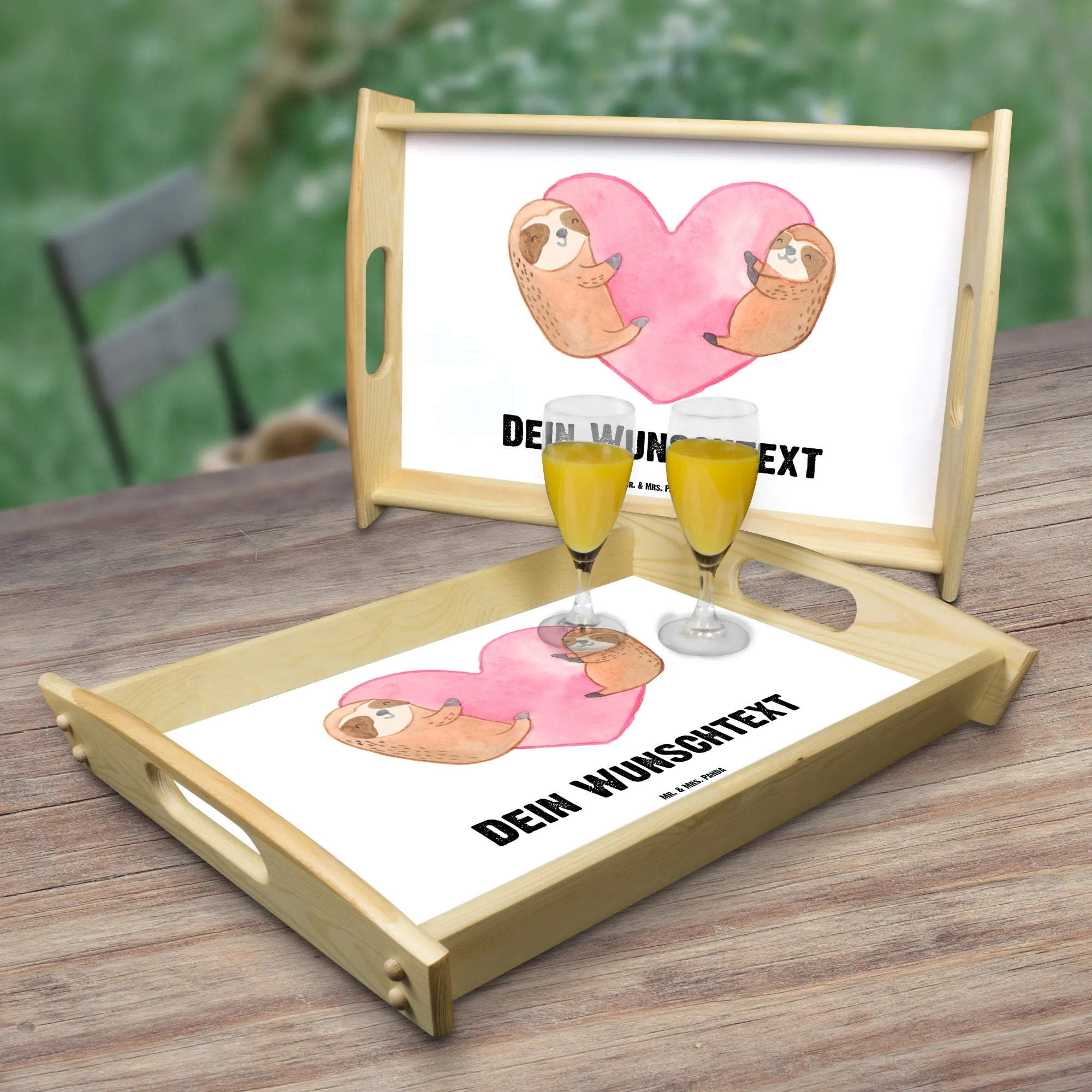 Personalisiertes Serviertablett Faultiere Herz – Mr. & Mrs. Panda