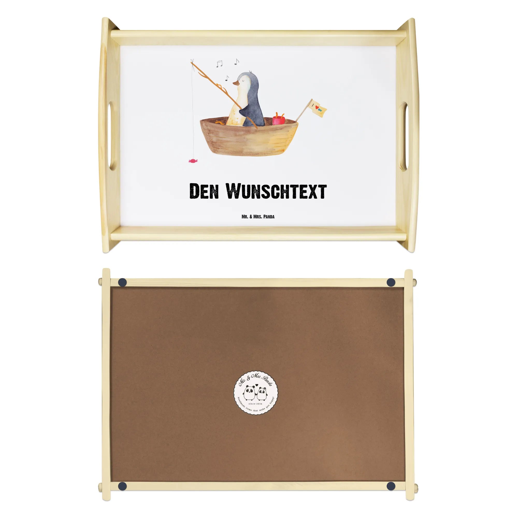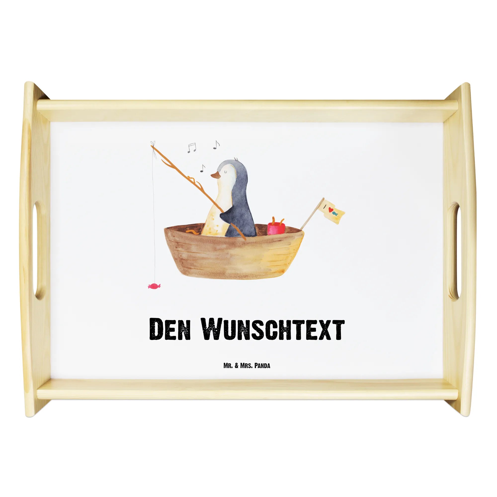 Der fröhliche Pinguin auf einem kleinen Angelboot mit Bonbons am Haken sorgt für ein Lächeln an jedem Morgen. Das Tablett hat die Maße 480 mm x 365 mm x 65 mm und besteht aus hochwertigem, lasiertem Echtholz, was es nicht nur langlebig, sondern auch ästhetisch ansprechend macht. Du kannst dein Tablett ganz personalisieren, indem du es mit deinem Namen oder einem Wunschtext versehen lässt. So wird es zu einem ganz besonderen Geschenk oder einem tollen Accessoire in deiner Küche.