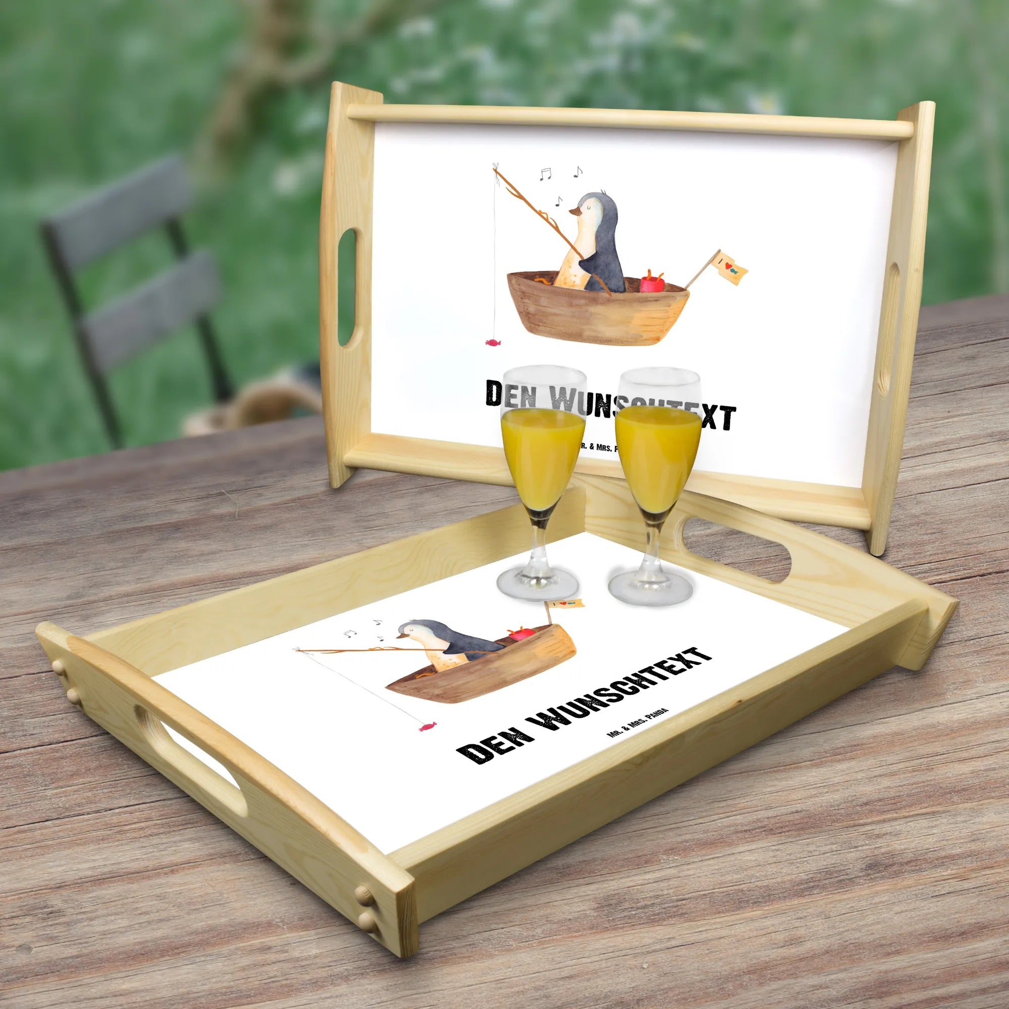 Personalisiertes Serviertablett Pinguin Angelboot