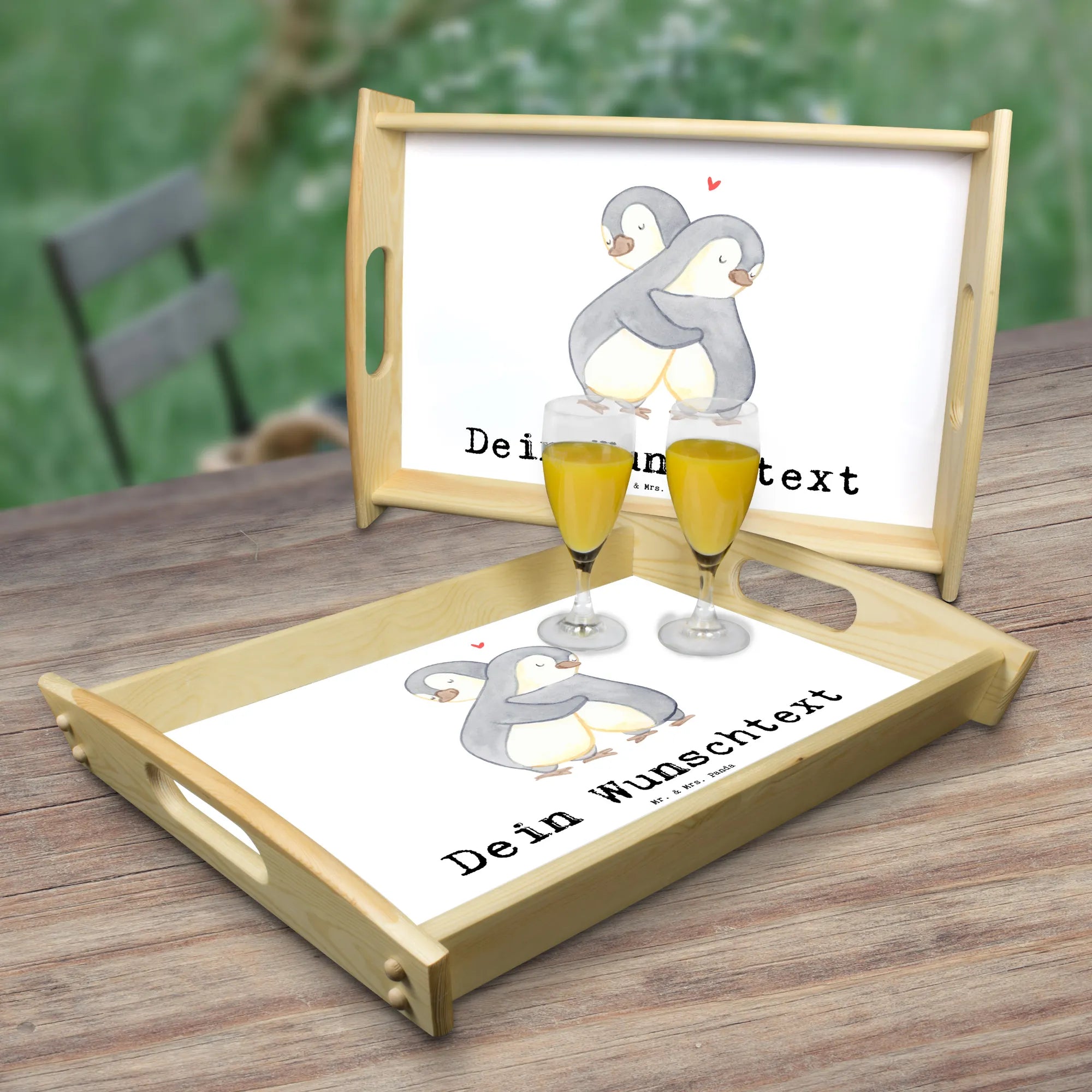 Entdecke das perfekte Geschenk für deine beste Freundin mit unserem personalisierten Serviertablett "Pinguin Beste Lieblingsfreundin der Welt" von Mr. & Mrs. Panda!