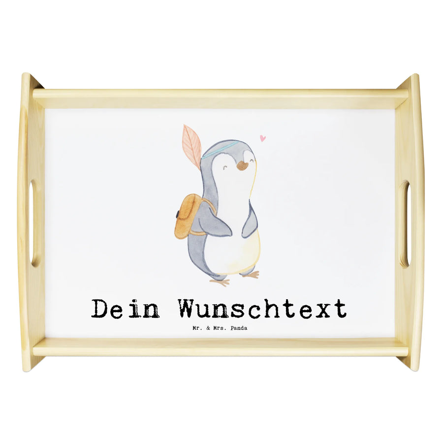 Das personalisierte Serviertablett von Mr. & Mrs. Panda macht jedes Frühstück zu etwas Besonderem! Mit einer Größe von 480 mm x 365 mm x 65 mm und einem Gewicht von 925 g ist es das ideale Tablett, um dein Essen stilvoll zu servieren. Hergestellt aus lasiertem Echtholz, bietet es eine elegante Optik und ist besonders langlebig. Die Möglichkeit, das Tablett mit deinem eigenen Wunschtext oder Namen zu personalisieren, macht es zu einem wundervollen Geschenk für Freunde und Familie. Durch die seitlichen Griffmulden lässt sich das Tablett leicht tragen, während die Anti-Rutsch Pads auf der Unterseite für einen sicheren Halt sorgen. Genieß dein Frühstück im Bett oder auf dem Sofa, ohne dir Sorgen machen zu müssen, dass etwas kippt! Einfach abwischbar mit einem feuchten Tuch und ein wenig Spülmittel, dabei bitte nicht einweichen. Beachte, dass die Anfertigung dieses speziellen Produkts etwas mehr Zeit in Anspruch nehmen kann.