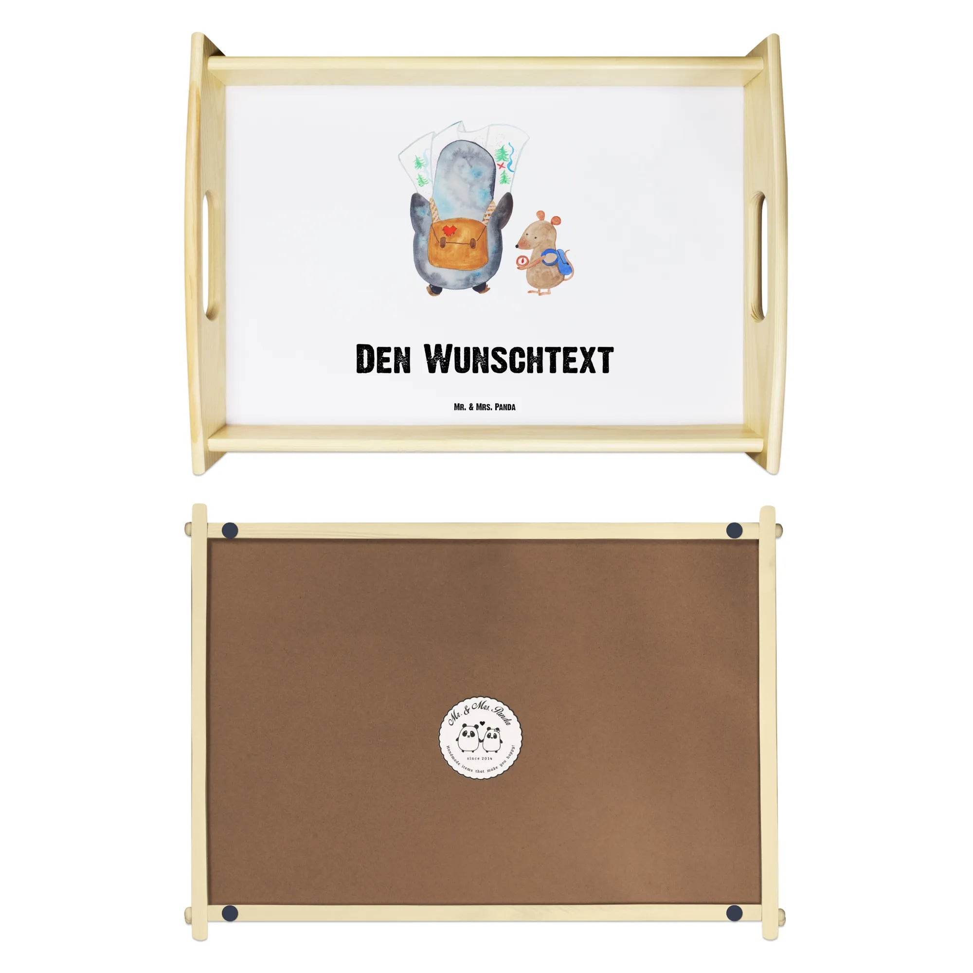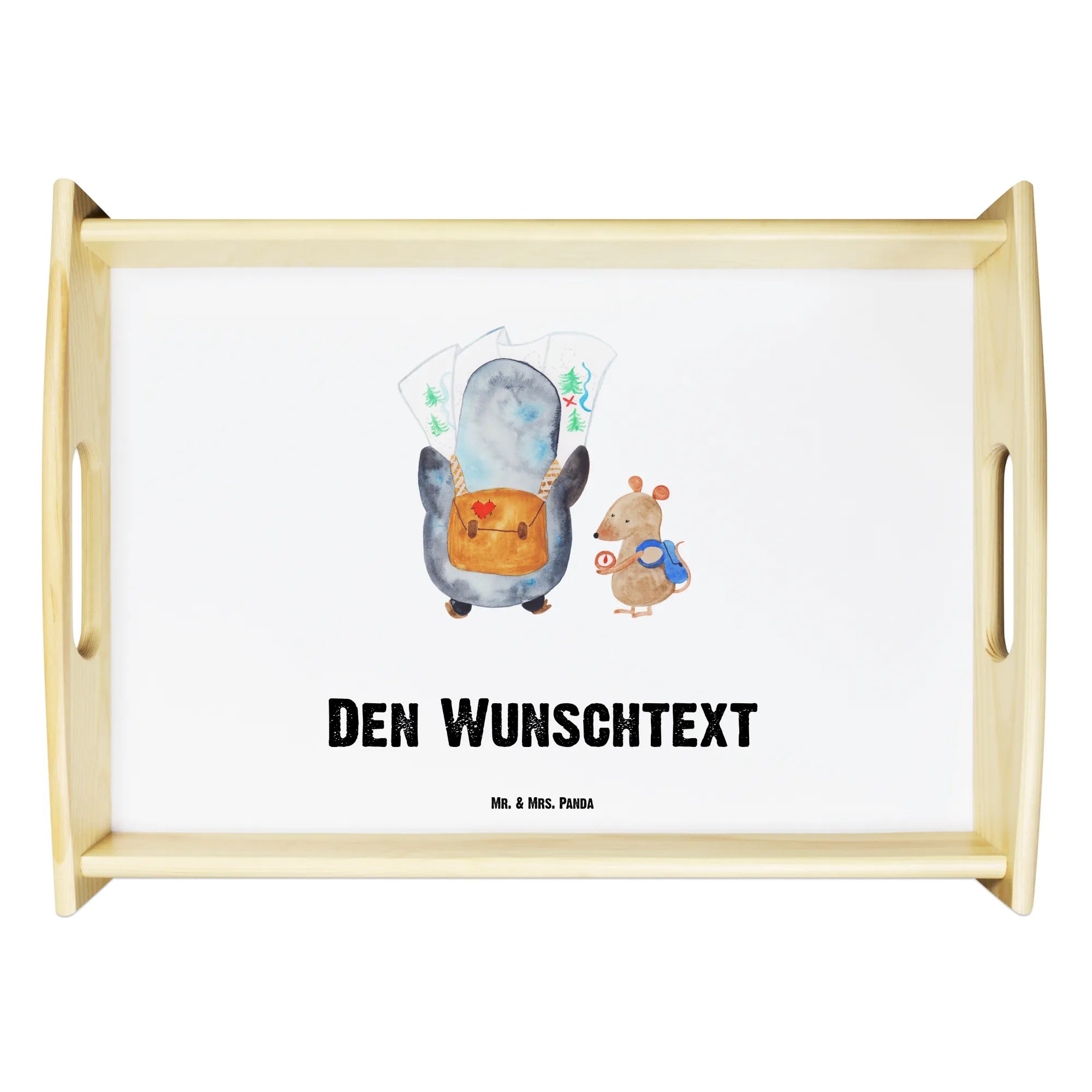 Das personalisierte Serviertablett Pinguin & Maus Wanderer von Mr. & Mrs. Panda ist das perfekte Geschenk für all jene, die das Abenteuer lieben und gerne die Welt entdecken. Ob für einen Roadtrip, eine Wanderung oder einfach für das gemütliche Frühstück im Bett – dieses wunderschöne Tablett wird zum idealen Begleiter.