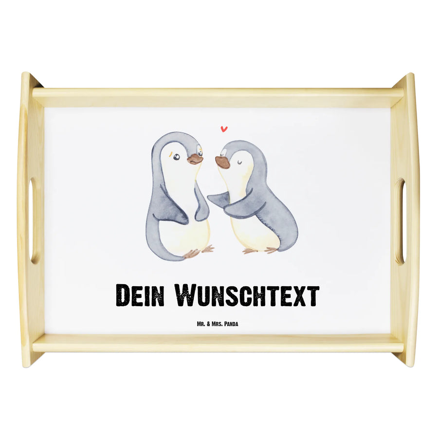 Personalisiertes Serviertablett Pinguine trösten – Mr. & Mrs. Panda