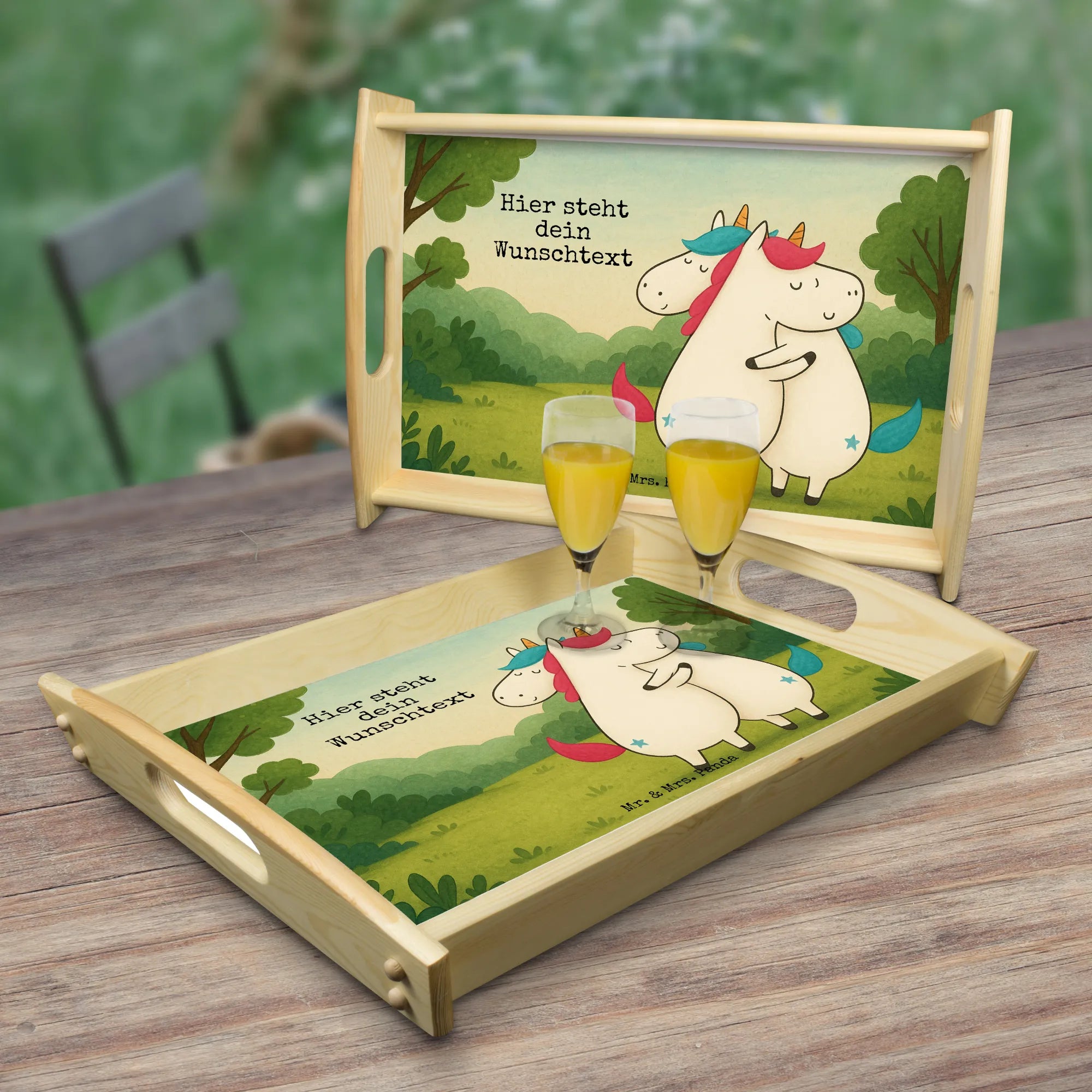 Personalisiertes Serviertablett Einhörner Umarmen Design