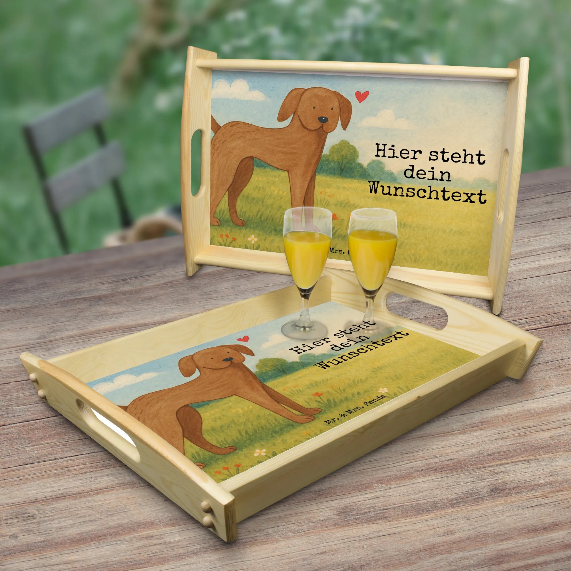 Entdecke unser wunderschönes personalisiertes Serviertablett von Mr. & Mrs. Panda, perfekt für fröhliche Frühstücksmomente im Bett oder auf dem Sofa! Mit einer Größe von 480 mm x 365 mm x 65 mm und einem Gewicht von 925 g, bietet es den perfekten Platz für dein Lieblingsessen oder Snacks. Das Tablett besteht aus lasiertem Echtholz und ist mit herrlichen Motiven und Sprüchen von Mr. & Mrs. Panda bedruckt. Du kannst es sogar mit deinem Wunschtext oder Wunschnamen personalisieren! Die seitlichen Griffmulden sorgen für eine mühelose Handhabung und die kratzfeste sowie robuste Oberfläche garantiert lange Freude an diesem hübschen Stück. Besonders praktisch sind die Anti-Rutsch Pads auf der Unterseite, die ein Abrutschen verhindern. Pflegeleicht kannst du es einfach mit einem feuchten Tuch und etwas Spülmittel abwischen - aber achte darauf, es nicht einzuweichen. Beachte bitte, dass die Herstellung aufgrund der aufwändigen Details etwas länger dauert.