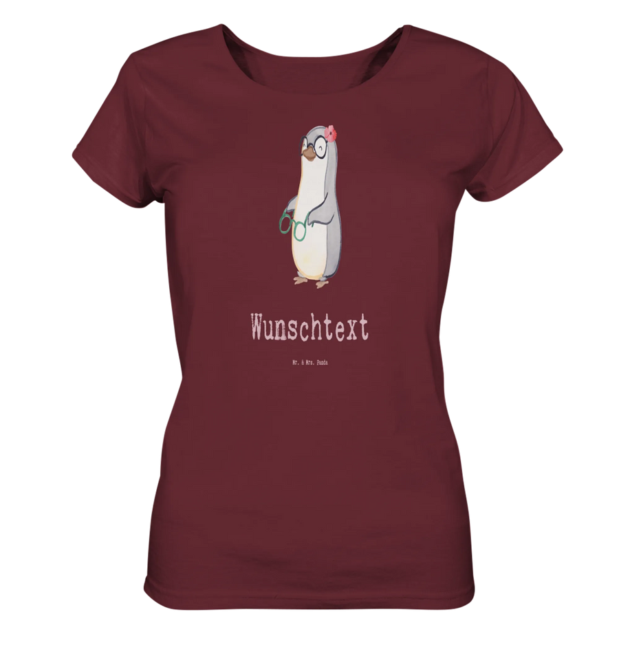 Das personalisierte Shirt für Damen mit dem Motiv "Augenoptikerin mit Herz" ist das perfekte Geschenk für alle, die im Bereich der Augenoptik tätig sind. Ob für einen Junggesellenabschied, ein Jubiläum oder einfach als liebevolle Geste – dieses Shirt wird mit Sicherheit ein Lächeln hervorrufen! Unsere Kollektion "Berufe" bietet dir einzigartige Geschenke, die speziell für Augenoptikerinnen, Augenärztinnen und Brillenverkäuferinnen entworfen wurden. Das Motiv zeigt einen süßen Pinguin, der eine angepasste Brille in der Hand hält. Dazu der Spruch: "Du bist nur ein halber Mensch, wenn du keine Augenoptikerin bist!"