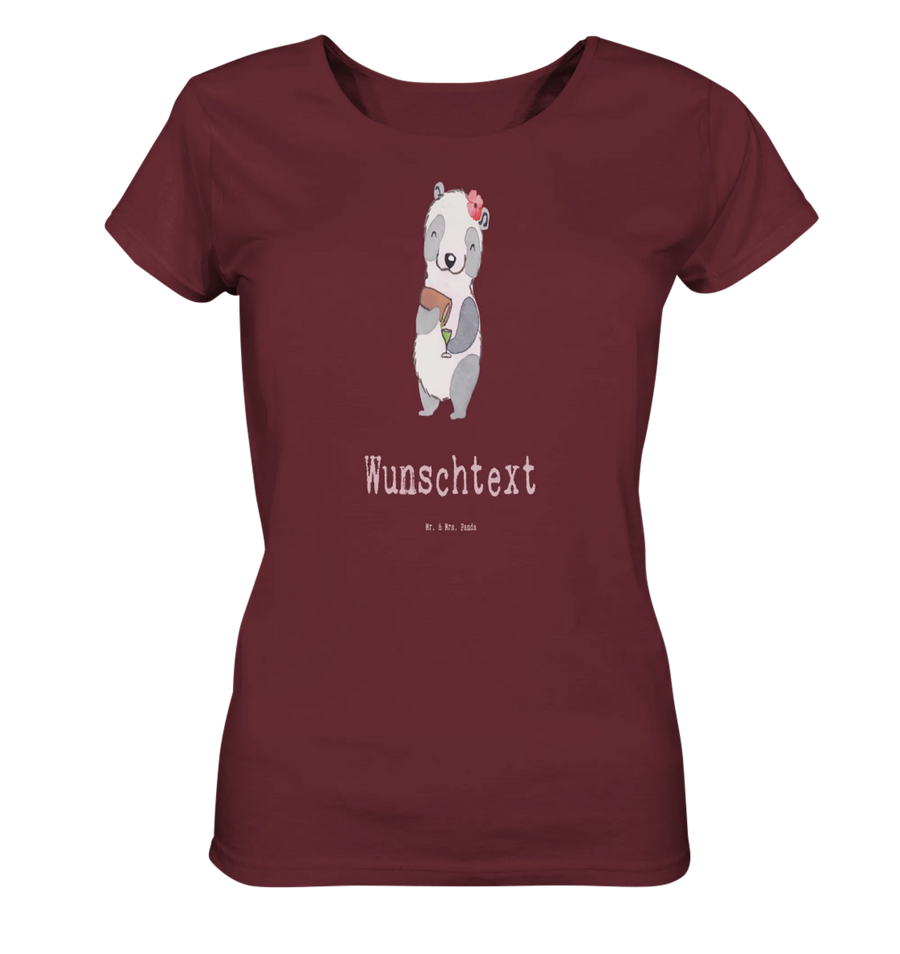 Das personalisierte Shirt Damen mit dem Motiv "Barkeeperin mit Herz" ist das perfekte Geschenk für alle, die Leidenschaft für das Mixen von Cocktails haben. Ob Geburtstag, Junggesellenabschied oder zum Jubiläum – dieses T-Shirt wird die Herzen aller Barkeeperinnen und Cocktail-Liebhaber höher schlagen lassen. Der hübsche Panda, der einen Cocktailmixer in der Hand hält, verkörpert die Freude und Kreativität, die in jeder Barkeeperin steckt.