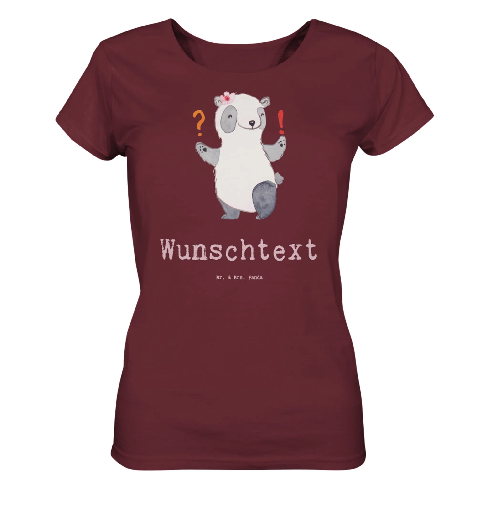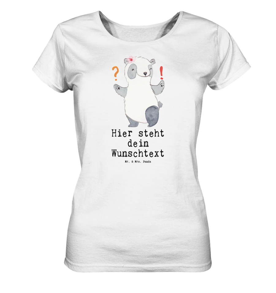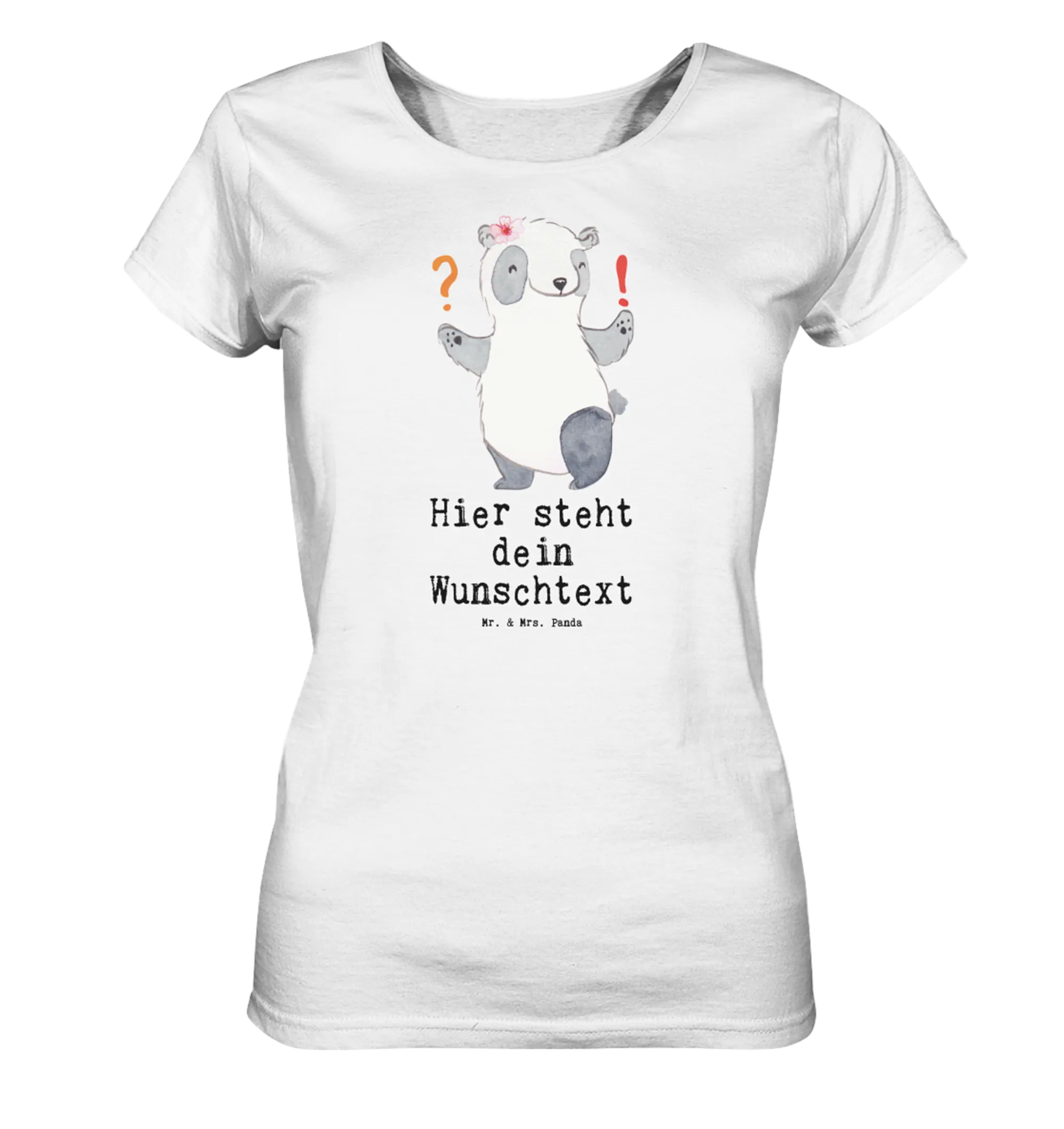 Das personalisierte Shirt für Damen von Mr. & Mrs. Panda überzeugt durch seinen einzigartigen Stil und hohen Tragekomfort. Hergestellt aus 100% BIO-Baumwolle ist es sanft zur Haut und bietet gleichzeitig die Möglichkeit, deinen Wunschtext oder Namen hinzuzufügen. Die fröhlichen Motive und Sprüche bringen Farbe in deinen Frühling und Sommer! In verschiedenen Größen erhältlich, passt es perfekt zu jeder Figur und sorgt mit seinem superweichen Stoff dafür, dass du dich rundum wohlfühlst. Beachte unsere Größentabelle, um die passende Größe zu finden. Jedes Shirt wird von Hand für dich gefertigt, was es zu einem besonderen Geschenk macht. Für die Pflege einfach bei maximal 30 °C in die Waschmaschine geben und sanfte Reinigungsmittel nutzen.