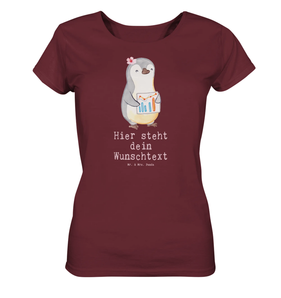 Das personalisierte Shirt Damen mit dem süßen Motiv "Business Analyst mit Herz" aus der kreativen Berufe Kollektion von Mr. & Mrs. Panda ist das perfekte Geschenk für alle, die mit Leidenschaft und Engagement in der Welt der Daten und Analysen arbeiten. Das niedliche Design, das einen charmanten Pinguin zeigt, der ein Diagramm hält, bringt nicht nur ein Lächeln auf die Gesichter der Trägerin, sondern zeigt auch die Liebe zu ihrem Beruf.