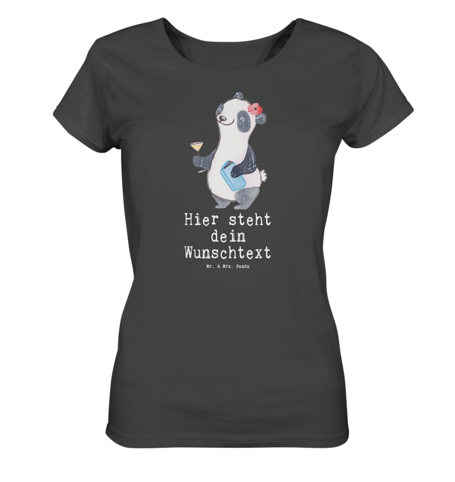 Das personalisierte Shirt für Damen von Mr. & Mrs. Panda überzeugt durch seinen einzigartigen Stil und hohen Tragekomfort. Hergestellt aus 100% BIO-Baumwolle ist es sanft zur Haut und bietet gleichzeitig die Möglichkeit, deinen Wunschtext oder Namen hinzuzufügen. Die fröhlichen Motive und Sprüche bringen Farbe in deinen Frühling und Sommer! In verschiedenen Größen erhältlich, passt es perfekt zu jeder Figur und sorgt mit seinem superweichen Stoff dafür, dass du dich rundum wohlfühlst. Beachte unsere Größentabelle, um die passende Größe zu finden. Jedes Shirt wird von Hand für dich gefertigt, was es zu einem besonderen Geschenk macht. Für die Pflege einfach bei maximal 30 °C in die Waschmaschine geben und sanfte Reinigungsmittel nutzen.